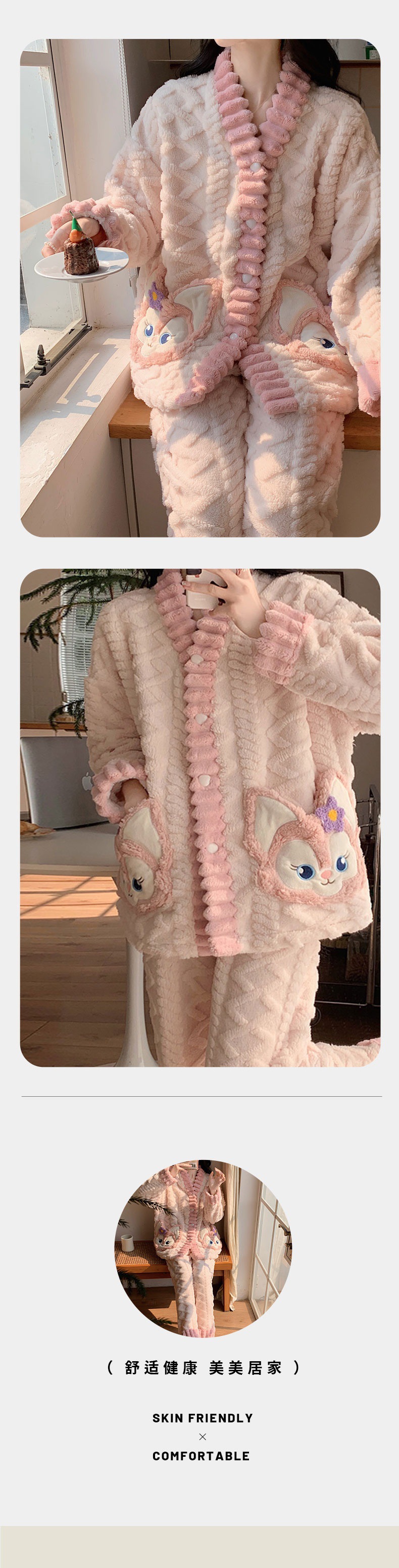 잠옷 여성의 가을과 겨울 산호 양털 두껍게 따뜻한 귀여운 2023 새로운 플란넬 홈웨어 세트