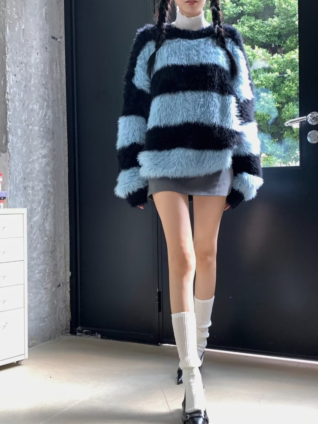 가을과 겨울 둥근 목 스웨터 남성용 일본인 복고풍 느슨한 올 매치 디자인 컬러 매칭 커플 두꺼운 스웨터스토어 가기