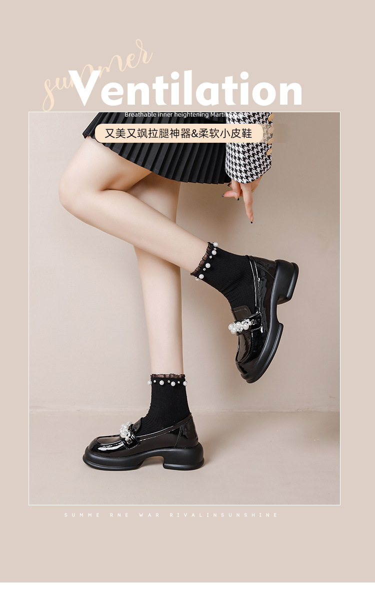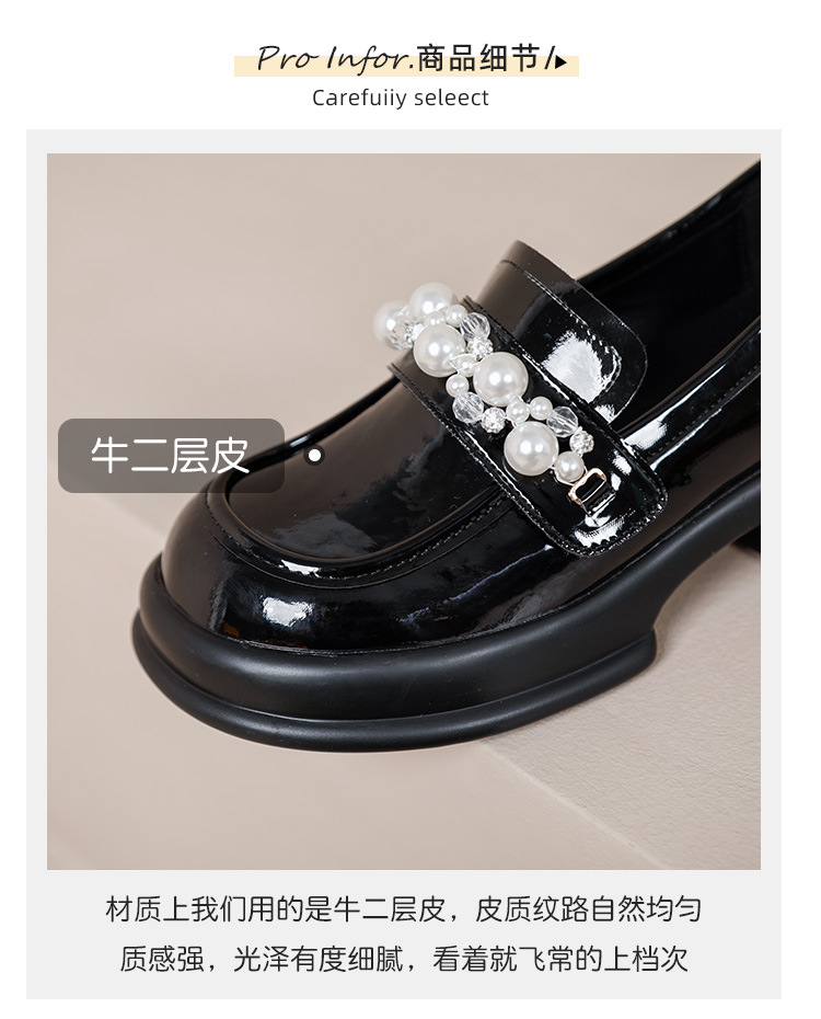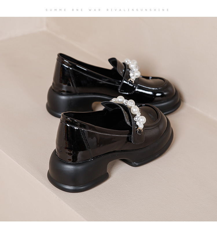 정품 가죽 플랫폼 로퍼 여성의 봄과 가을 새로운 진주 광택 영국 스타일의 가죽 신발 숨겨진 높이 큰 발가락 신발 스몰 사이즈스토어 가기