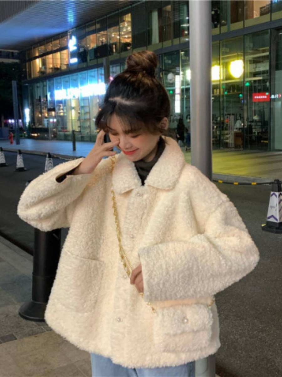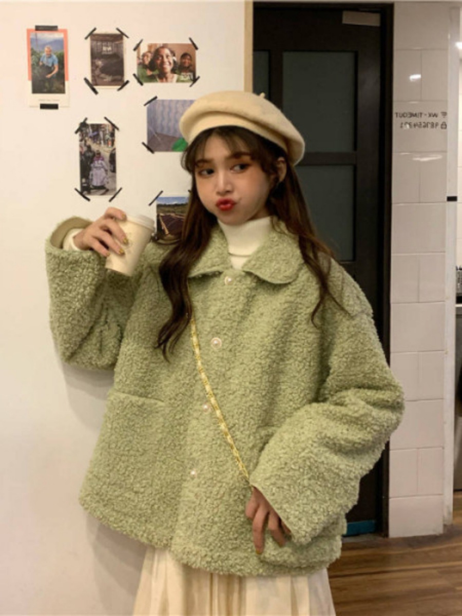 가짜 캐시미어 코트 가을과 겨울 두껍게 따뜻한 귀여운 나이 감소 기모 느슨한 코트스토어 가기