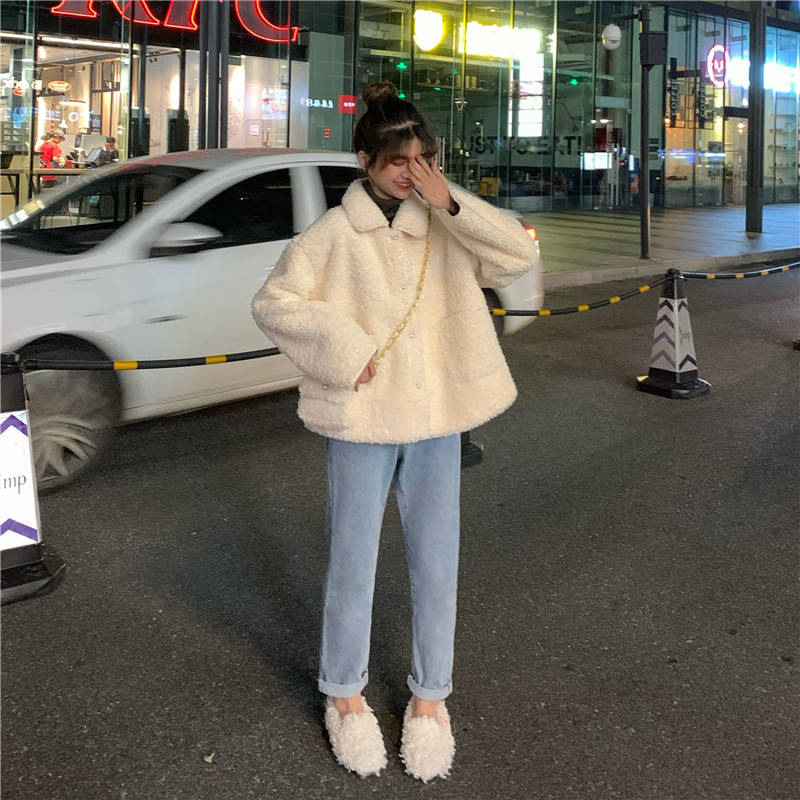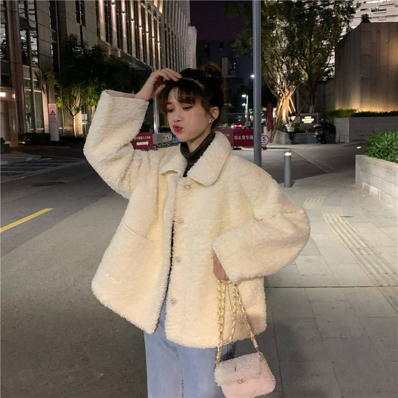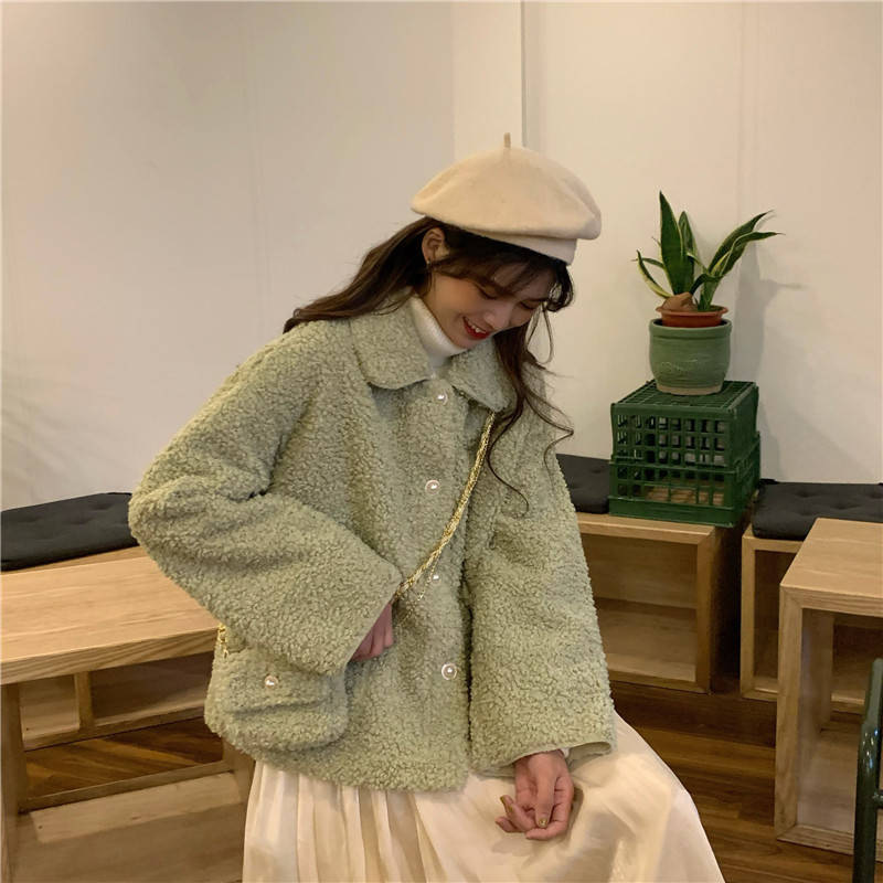 가짜 캐시미어 코트 가을과 겨울 두껍게 따뜻한 귀여운 나이 감소 기모 느슨한 코트