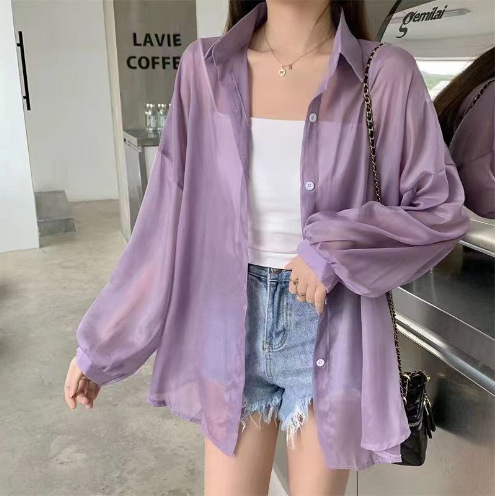 대외 무역 여름 아이스 실크 선스크린 셔츠 여성용 얇은 카디건 디자인 센스 니쉬 건조 센스 블라우스 셔츠 코트 재킷스토어 가기