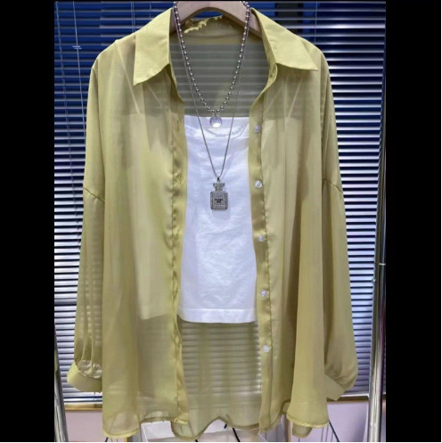 대외 무역 여름 아이스 실크 선스크린 셔츠 여성용 얇은 카디건 디자인 센스 니쉬 건조 센스 블라우스 셔츠 코트 재킷