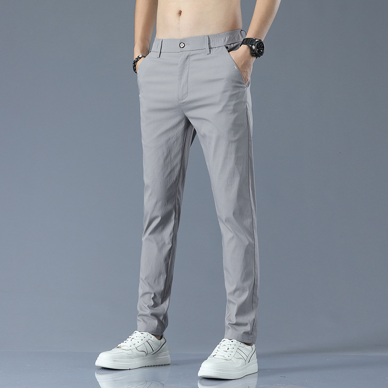 남성용 아이스 실크 탄성 캐주얼 바지 남성용 슬림 핏 스키니 기본 다용도 바지 여름 얇은 드레이프 세트 바지 남성용