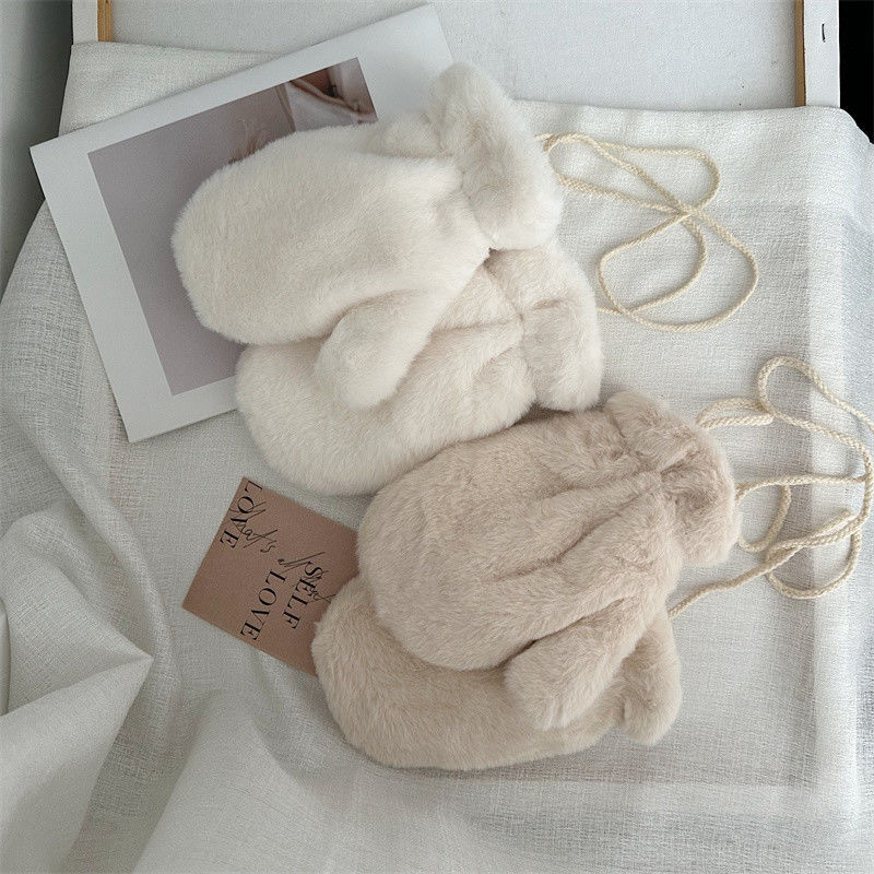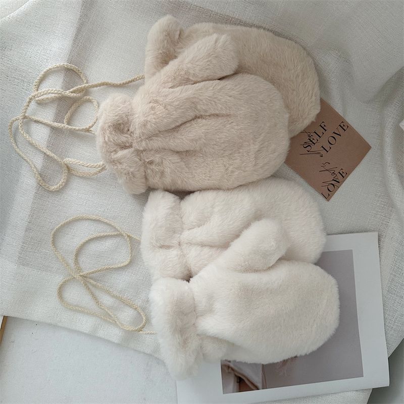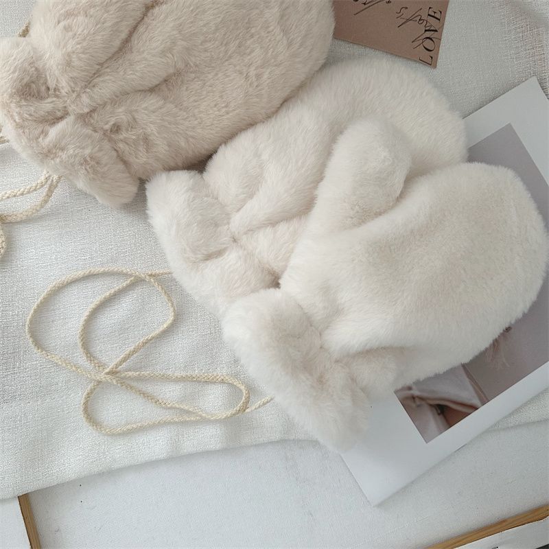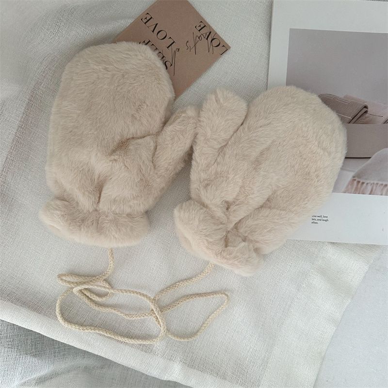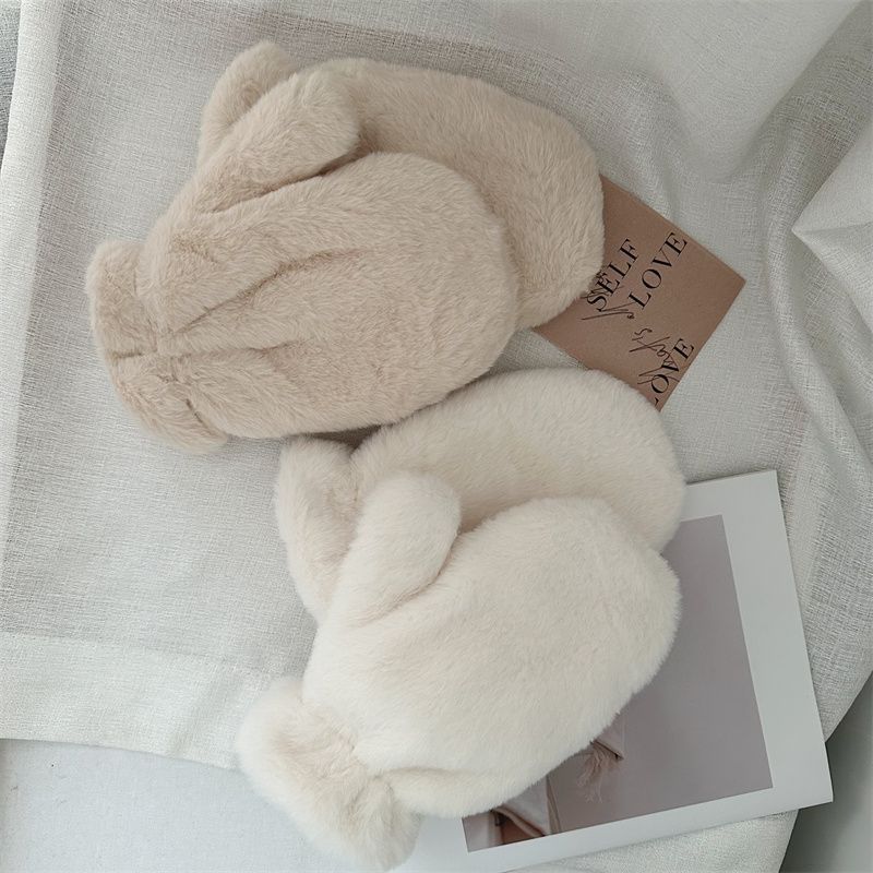 흰색 모조 토끼 헤어 장갑 기모 여성용 털 겨울 따뜻한 두꺼운 방한 승마스토어 가기