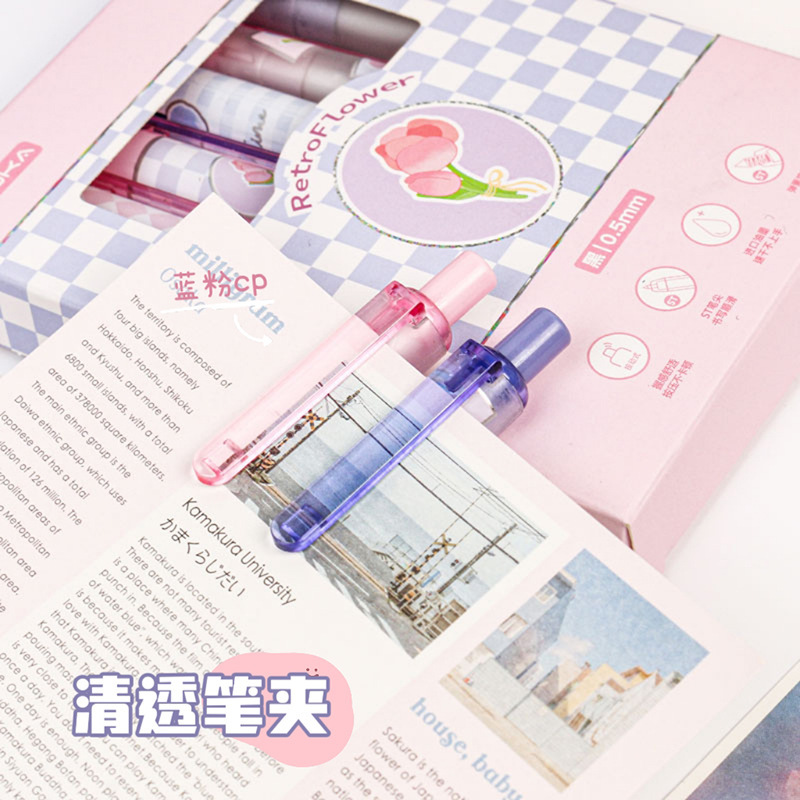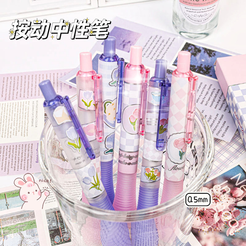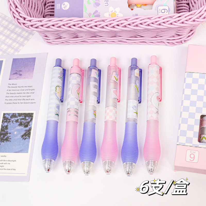 높은 찾고 소녀 심장 장미 젤 펜 보라색 박스 블랙 펜 프레스 펜 학생 프레스 빠른 건조 st 헤드 펜 블랙