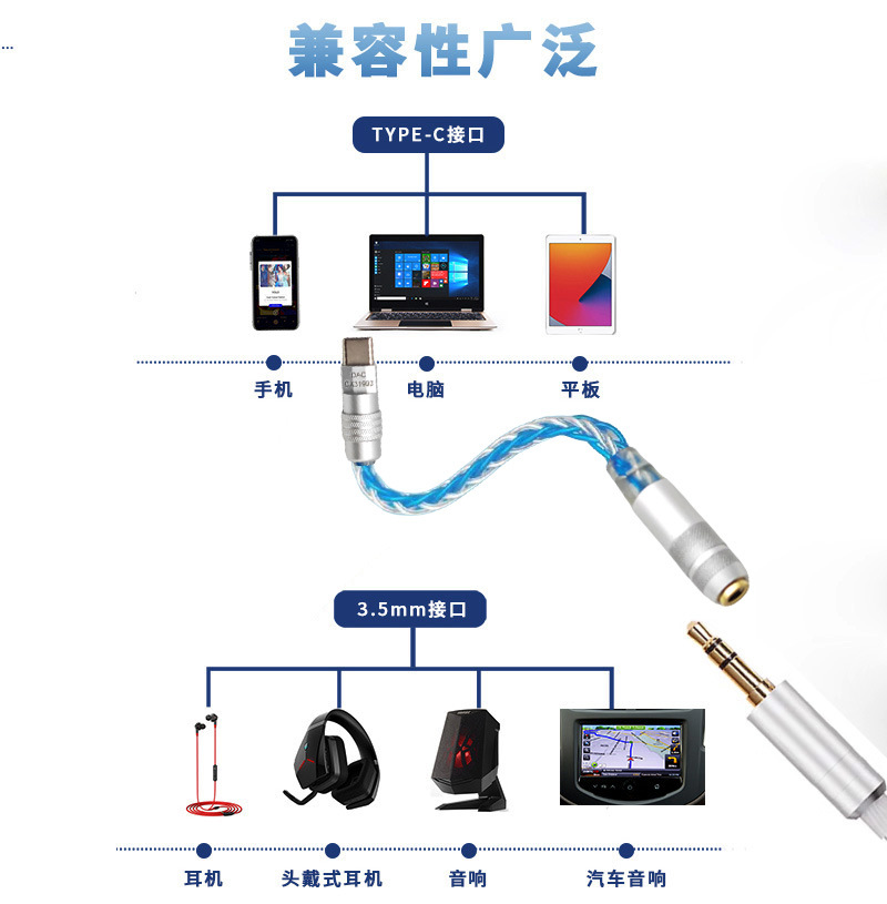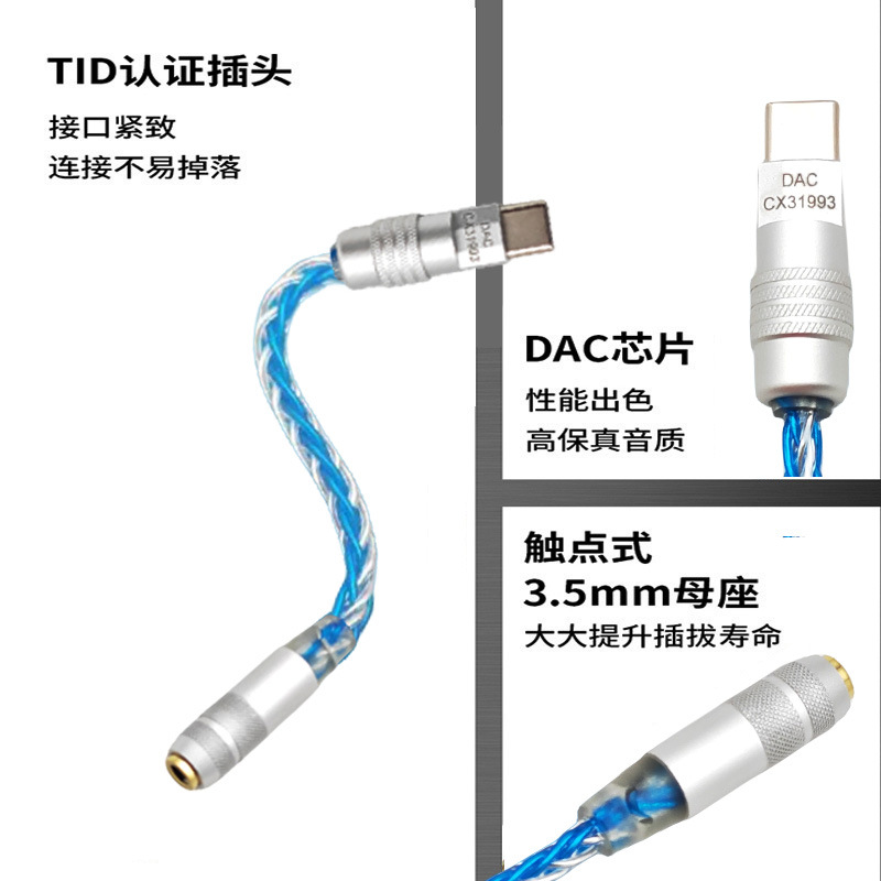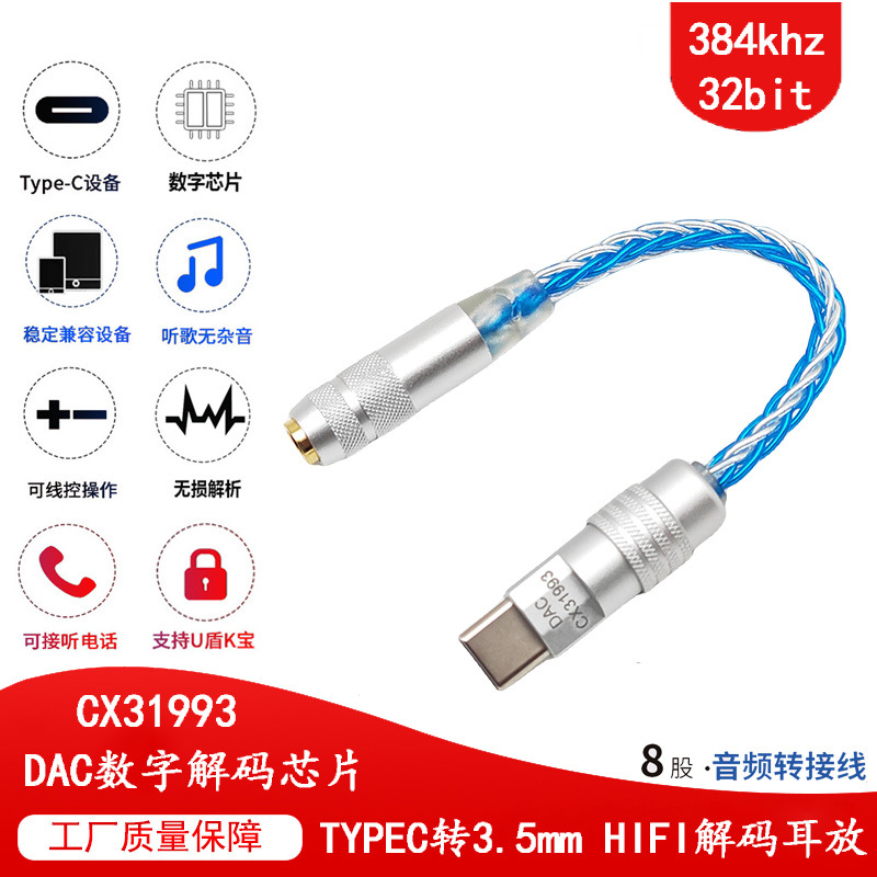 cx31993 type-c ~ 3.5mm 오디오 케이블 DAC 디지털 디코딩 어댑터 케이블 휴대 전화 및 컴퓨터 범용스토어 가기