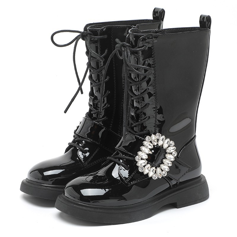 걸스 블랙 마틴 부츠 2023 가을과 겨울 새로운 아기 기모 가죽 부츠 어린이 부츠 긴 두꺼운 바닥 2 면화 신발스토어 가기