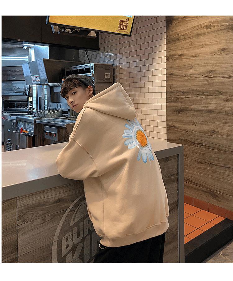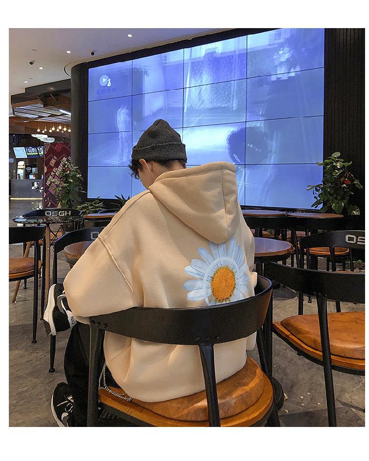남성용 스웨터 가을과 겨울 기모 두꺼운 후드 인 Harajuku 느슨한 bf 새로운 cec 트렌디 한 한국식 코트스토어 가기