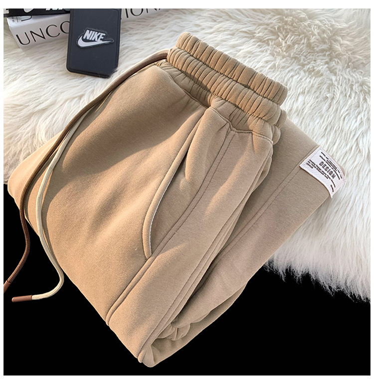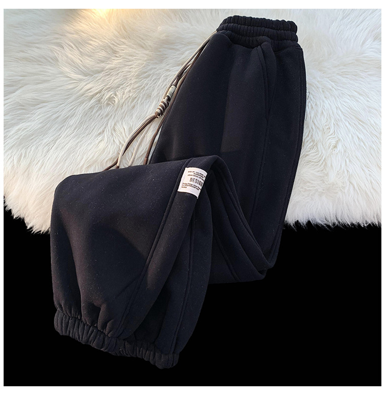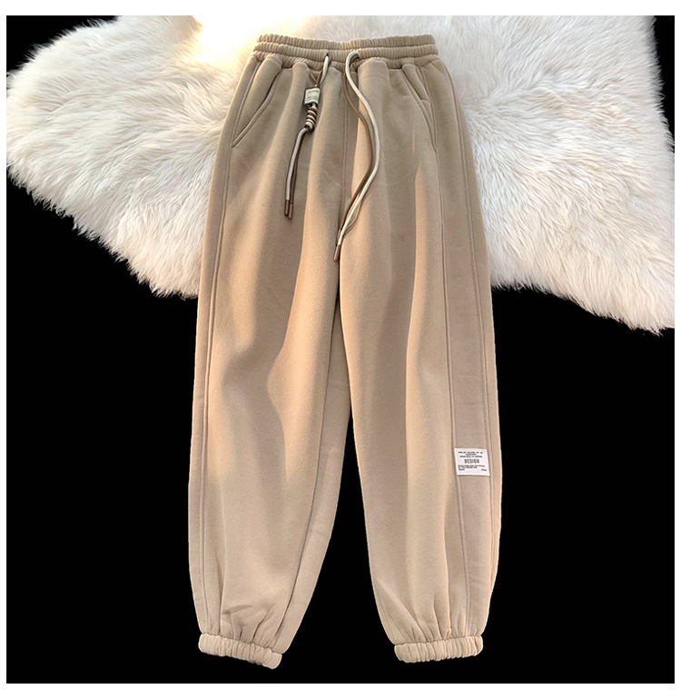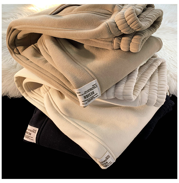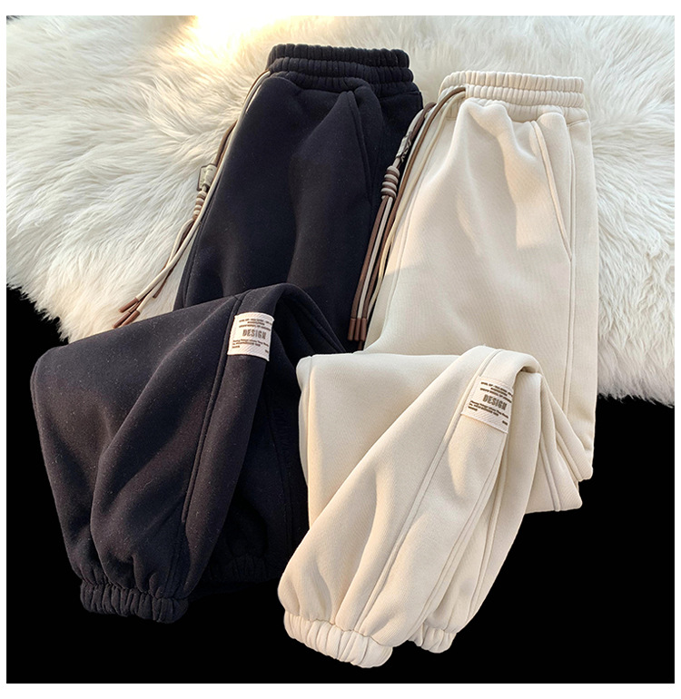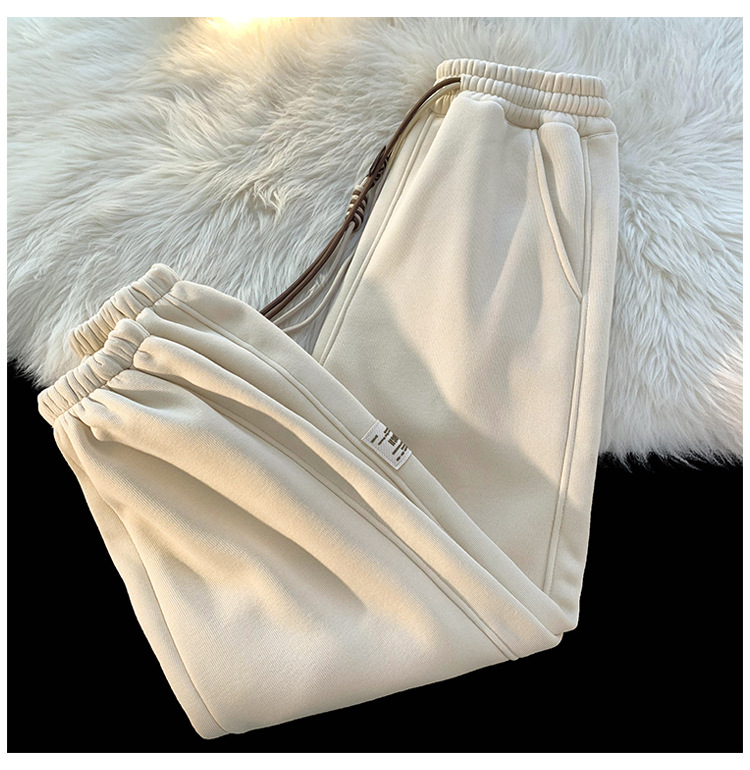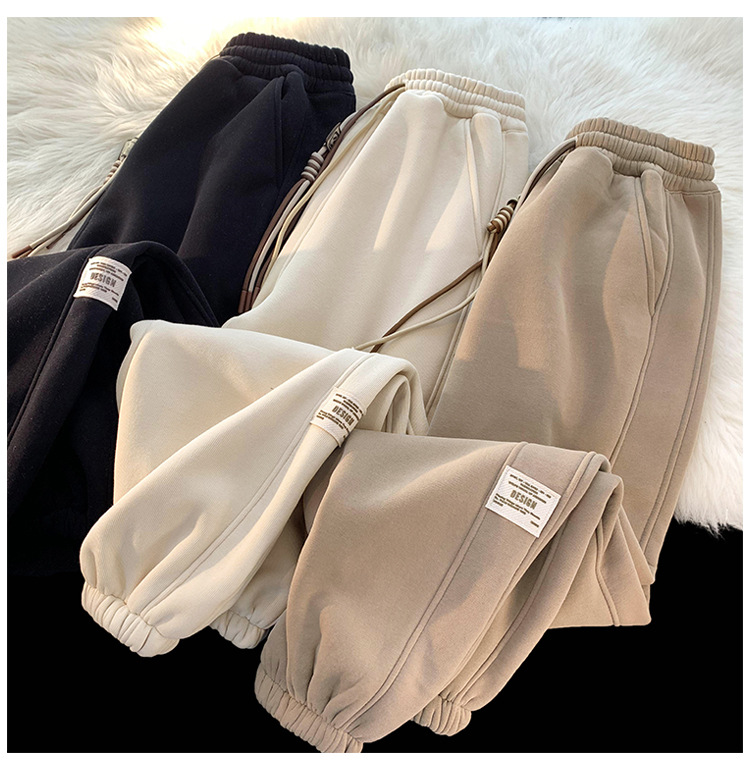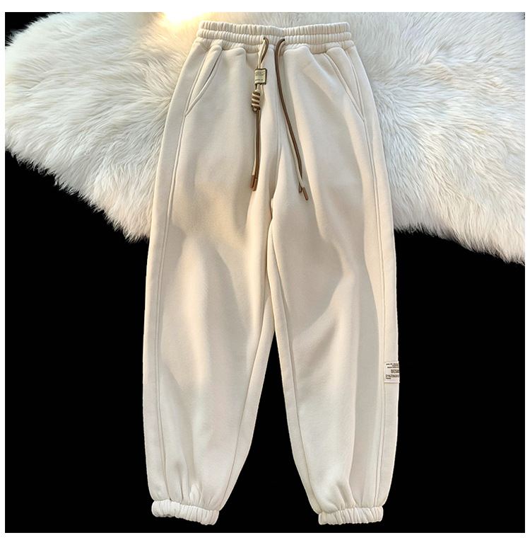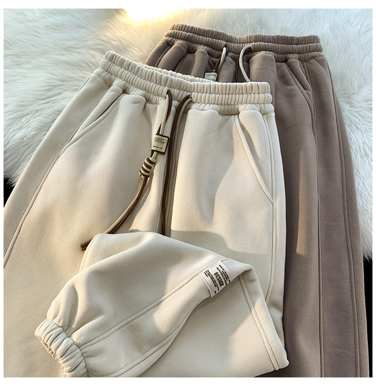 홍콩 스타일 헤비 스포츠 스웨트 팬츠 남성 가을과 겨울 새로운 느슨한 캐주얼 올 매치 바지 중국면 와이드 레그 단색 발목 묶음 바지스토어 가기
