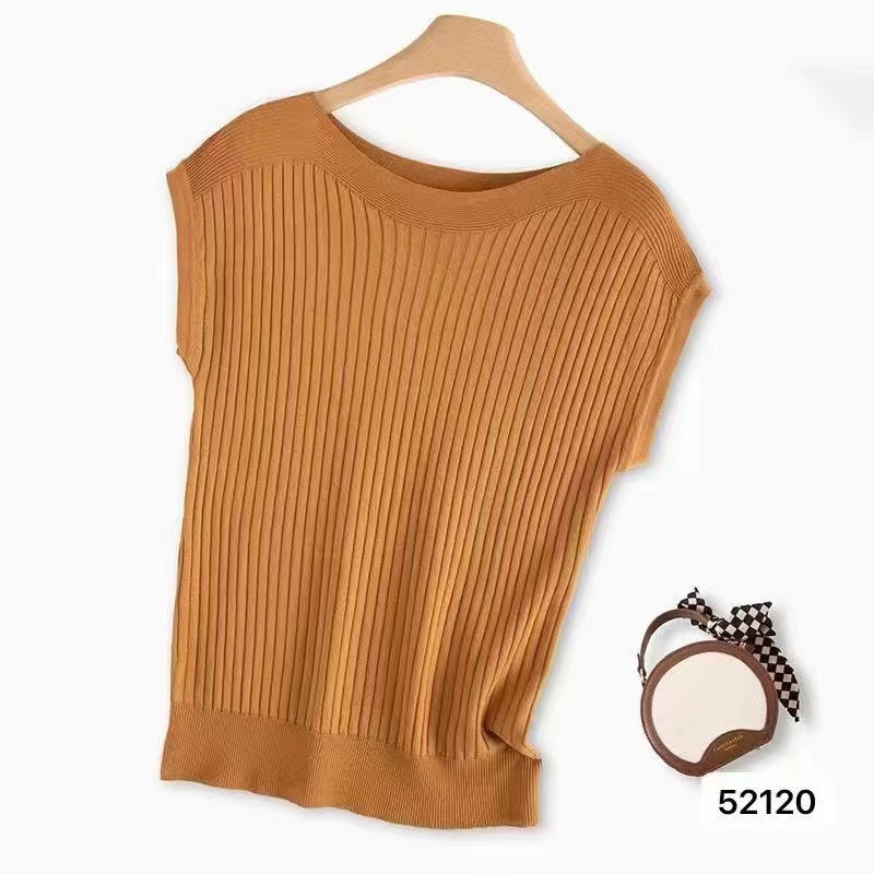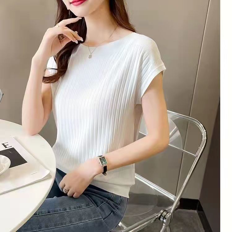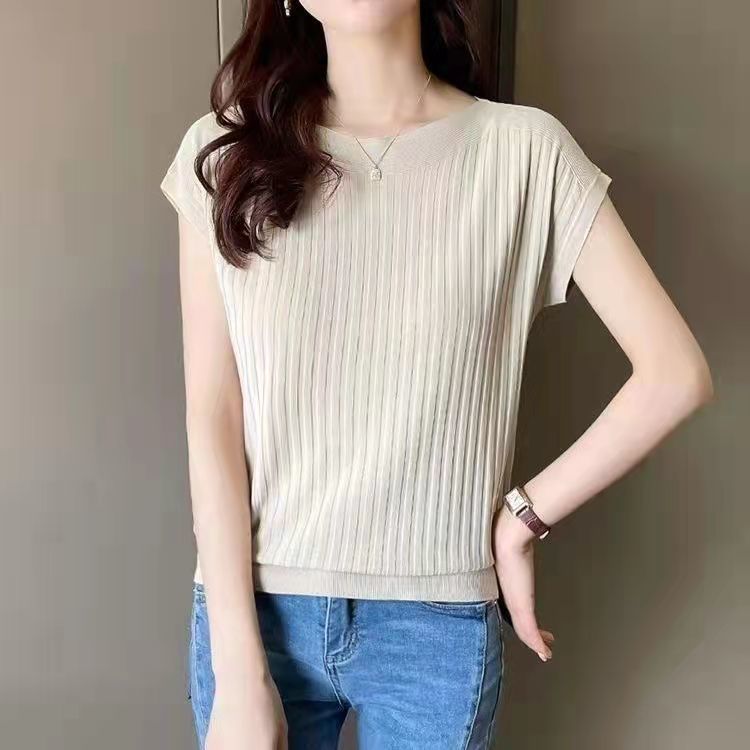 오프 넥 아이스 실크 니트 짧은 소매 여성의 여름 얇은 아우터 착용 다용도 티셔츠 탑 2023 새로운 느슨한 하프 슬리브스토어 가기