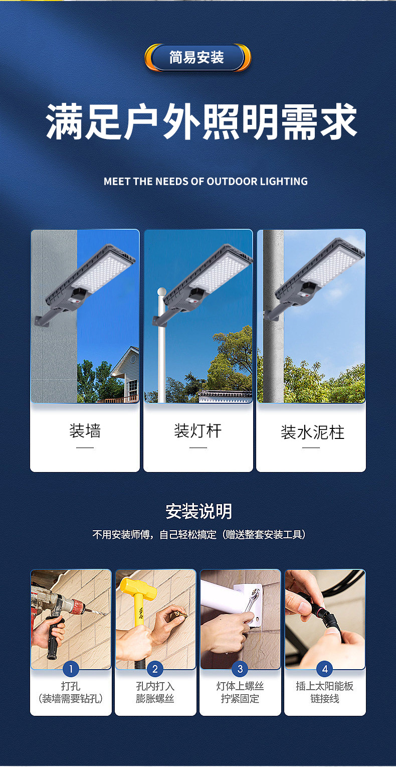 국경 통합 태양 가로등 야외 안뜰 램프 도로 커뮤니티 인체 유도 태양 램프
