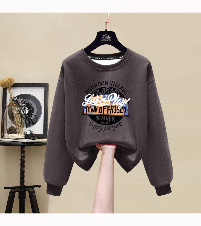 공장 도매 면화 스웨터 숙녀 새로운 겨울 플러스 벨벳 패딩 캐주얼 라운드 넥 코트 느슨한 편지 티셔츠스토어 가기
