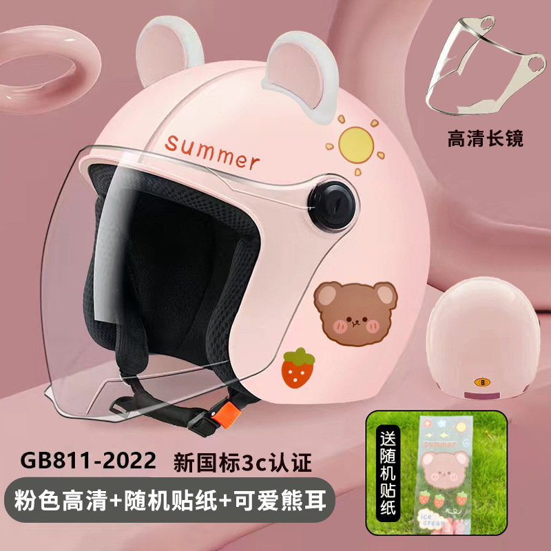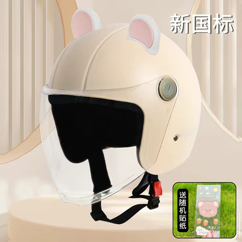 새로운 국가 표준 3C 인증 전기 자전거 헬멧 남성용 및 여성용 하프 헬멧 겨울 따뜻한 안전 솔리드 컬러 곰 귀