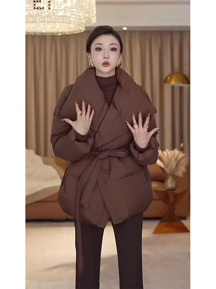 YT269078 겨울 새로운 고급 디자인 센스 샤넬 스타일 다크 브라운 허리 타이트 다운 재킷 두꺼운 여성 의류