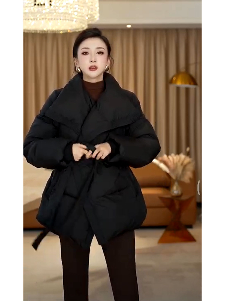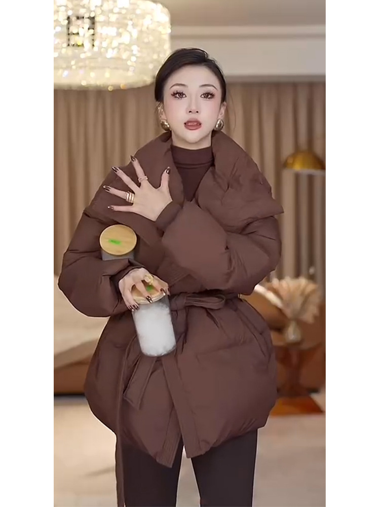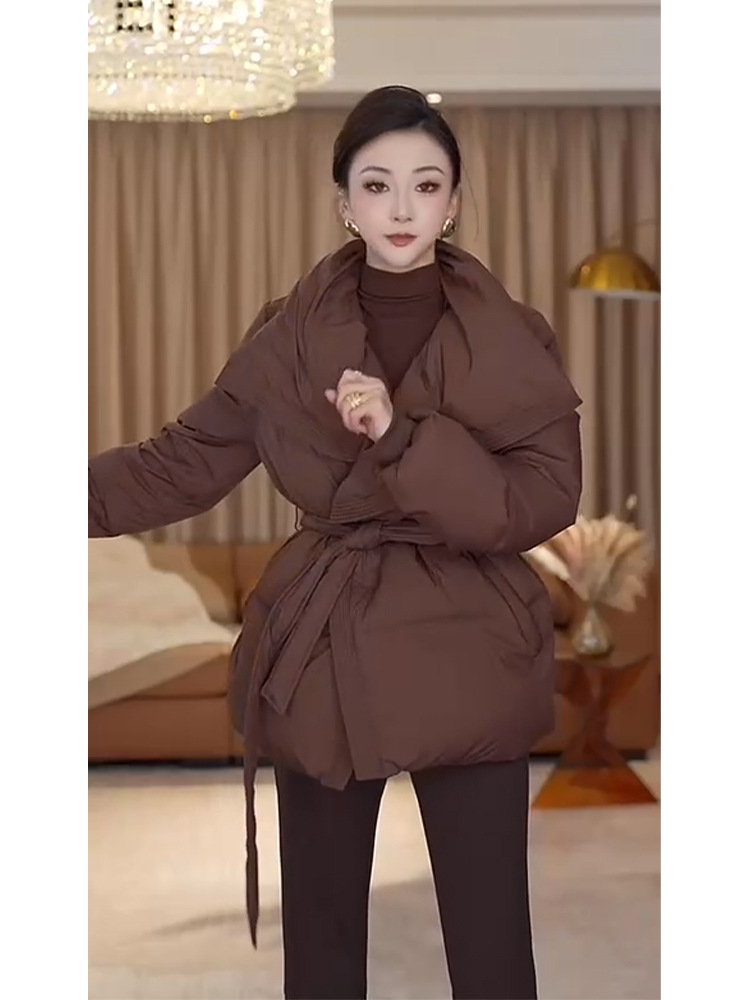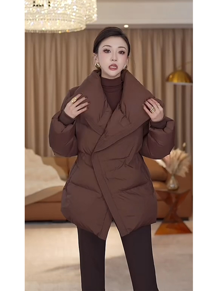 YT269078 겨울 새로운 고급 디자인 센스 샤넬 스타일 다크 브라운 허리 타이트 다운 재킷 두꺼운 여성 의류스토어 가기