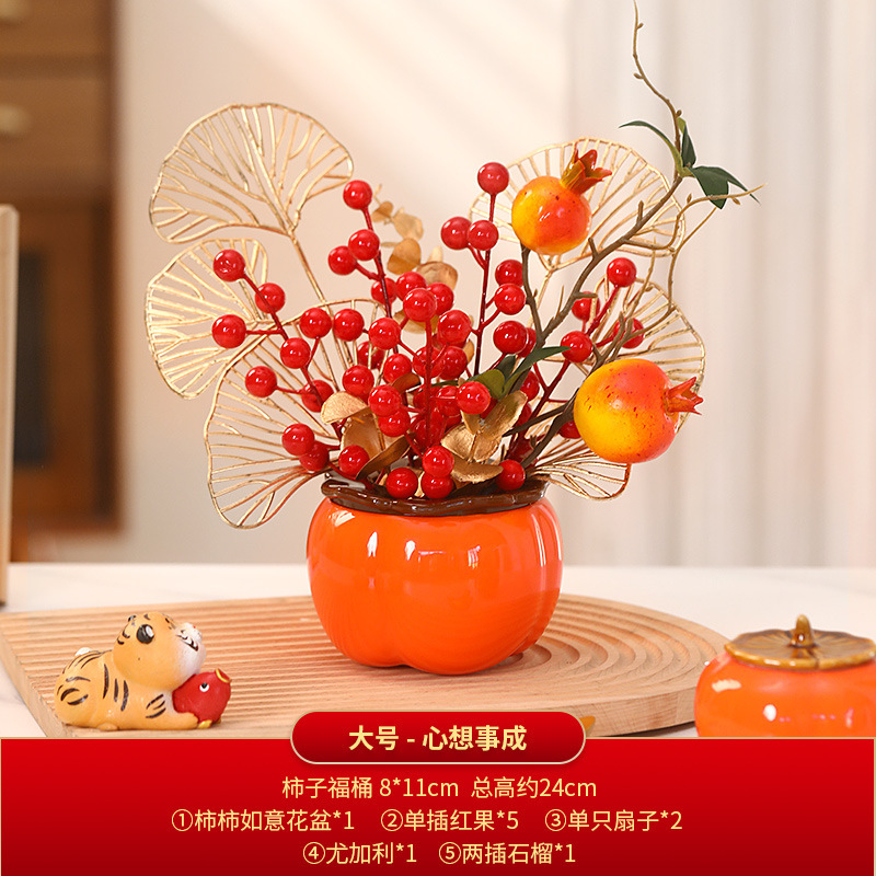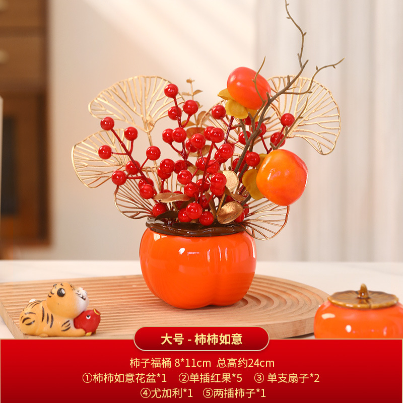 설날, 뱀의 해, 감을 놓으면 모든 일이 잘되다, 집들이 축하, 새 집, 이사, 장식, 행운의 열매