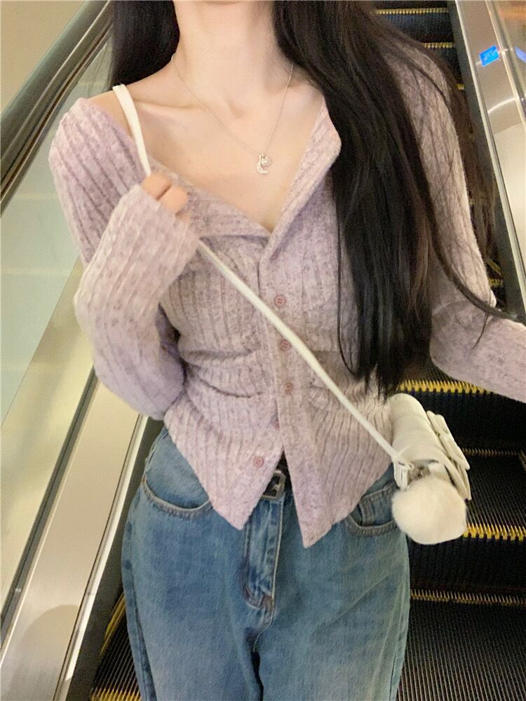라펠 주름 긴팔 니트 여성 티셔츠 초가을 신상 슬림핏 디자인 독특한 블라우스 상의스토어 가기