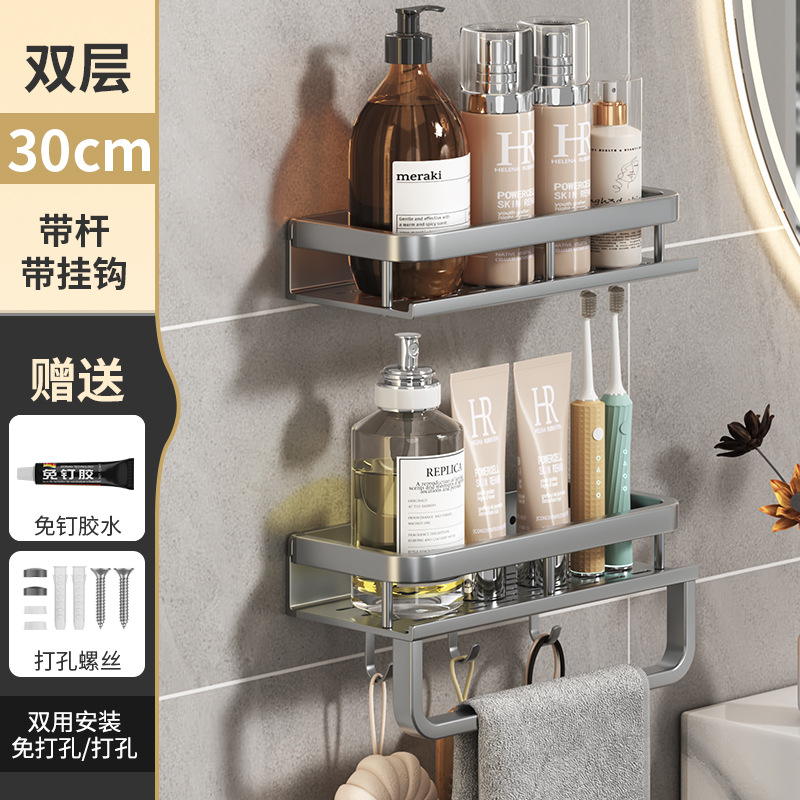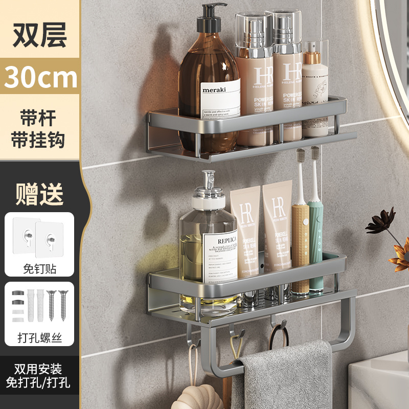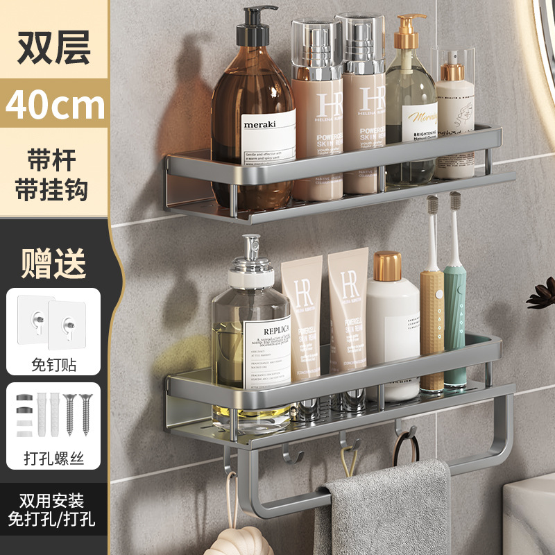 후크 옷걸이 욕실 화장실 보관 랙으로 조정 가능한 펀치 무료 다기능 보관 랙 가정용 주방스토어 가기