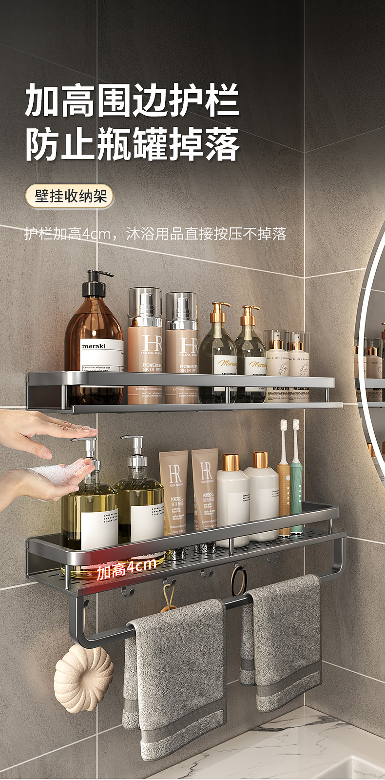 후크 옷걸이 욕실 화장실 보관 랙으로 조정 가능한 펀치 무료 다기능 보관 랙 가정용 주방