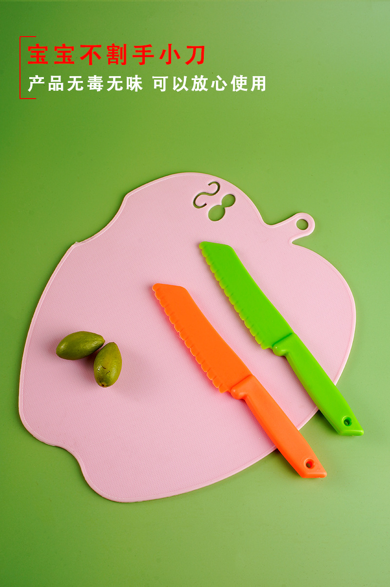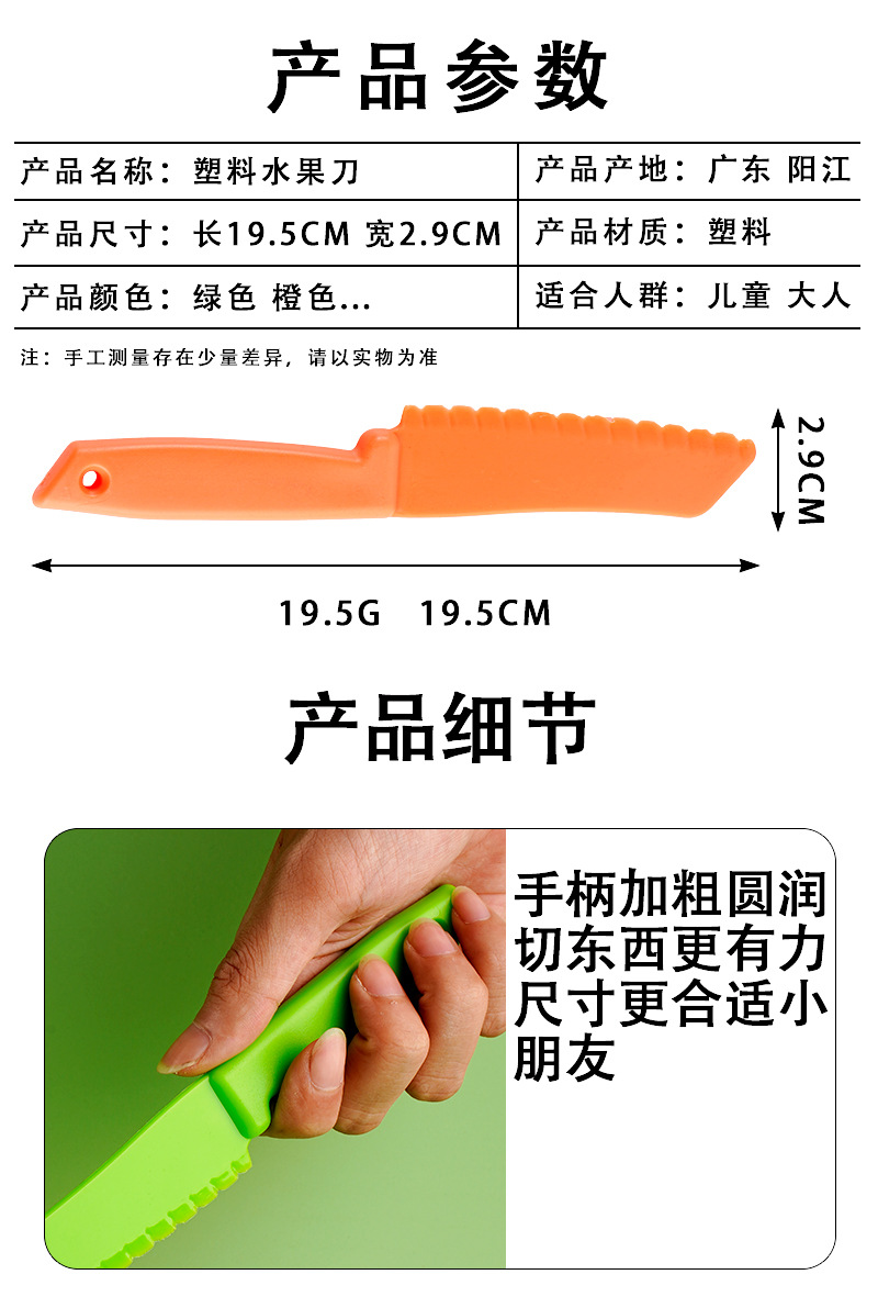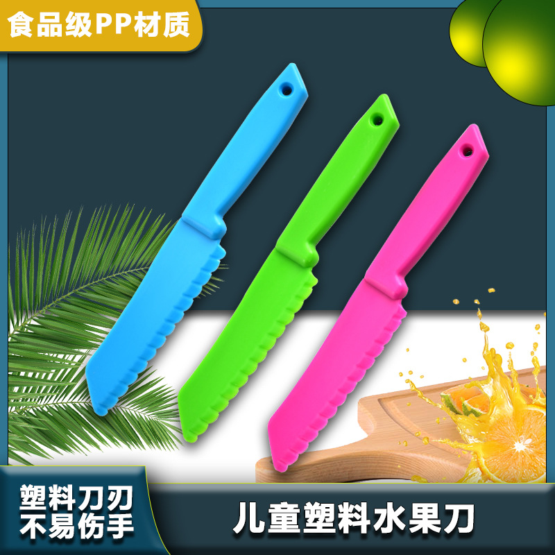 어린이 플라스틱 과일 칼 도매 생일 케이크 트레이 나이프 치즈 디저트 빵 칼 멜론과 과일 필링 장난감 칼