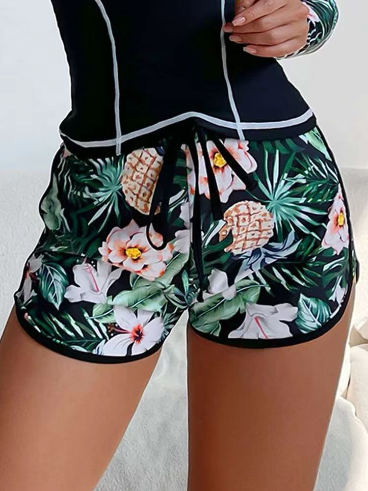2024 새로운 아마존 유럽과 미국의 다이빙 서핑 세트 긴 소매 태양 보호 디지털 인쇄 복서 분할 수영복 여성