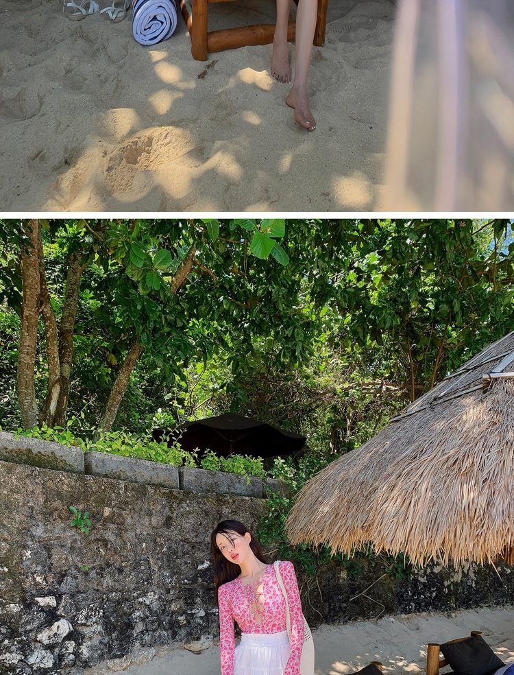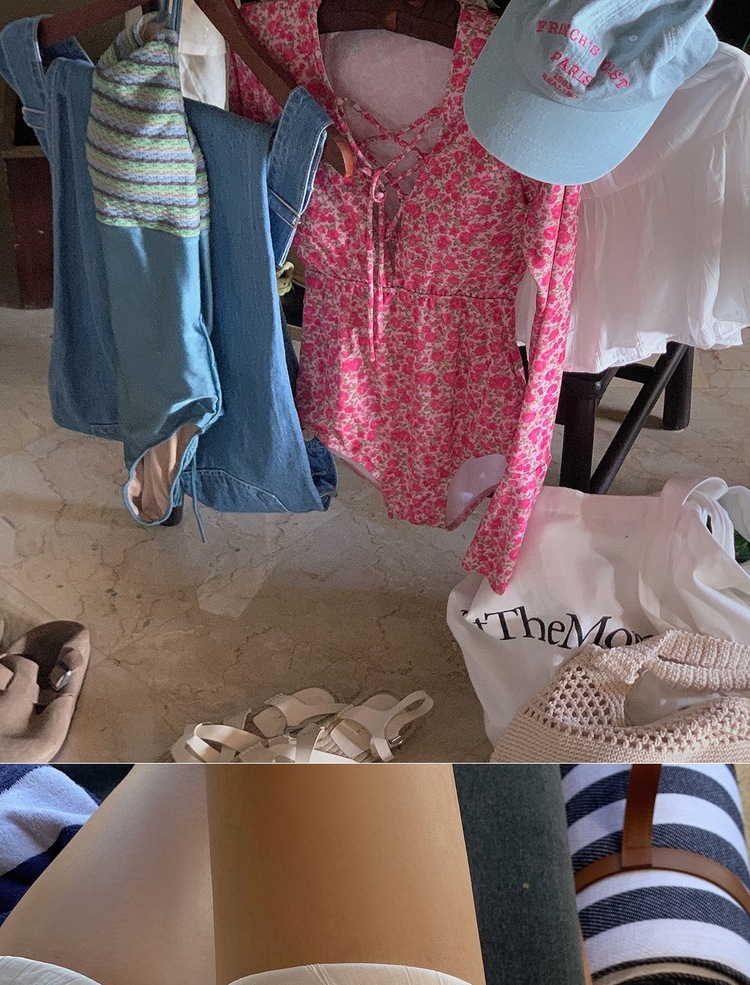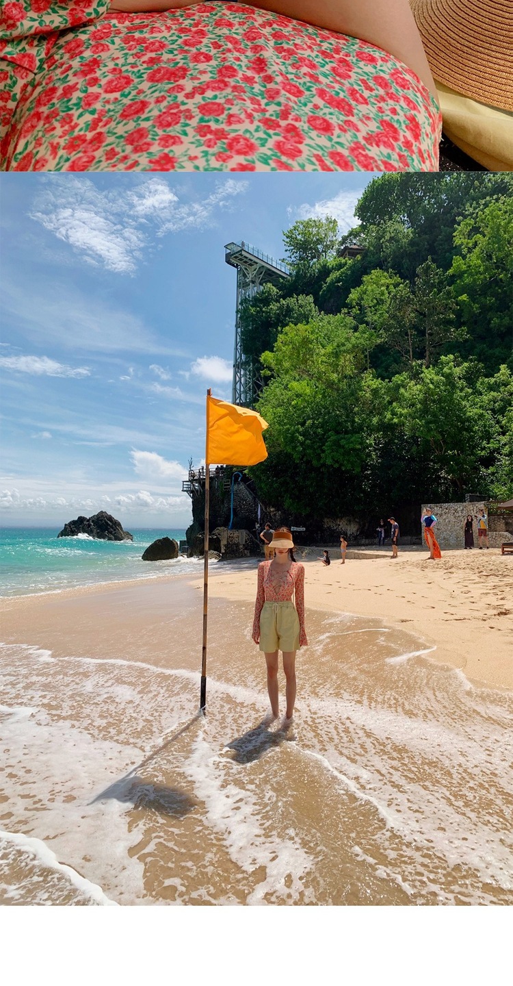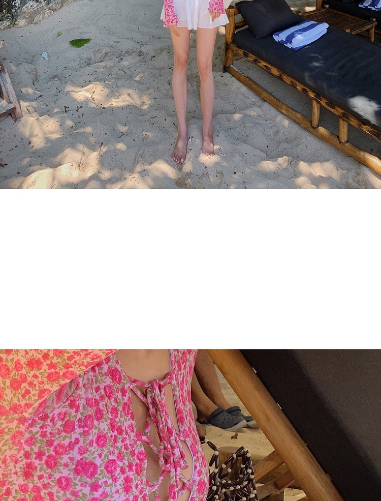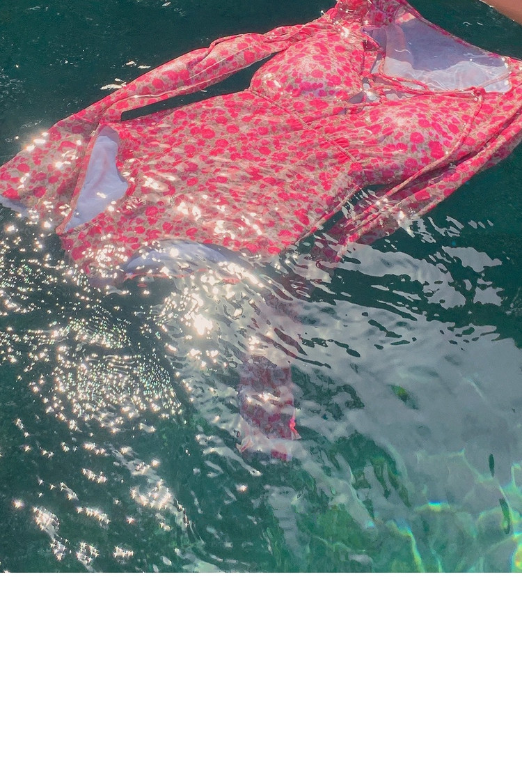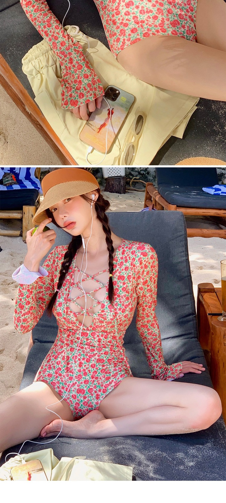 2024 한국식 동대문 딥 V 스트랩 플로럴 섹시 수영복 여성용 긴팔 슬림핏 작은 가슴 온천 수영복스토어 가기