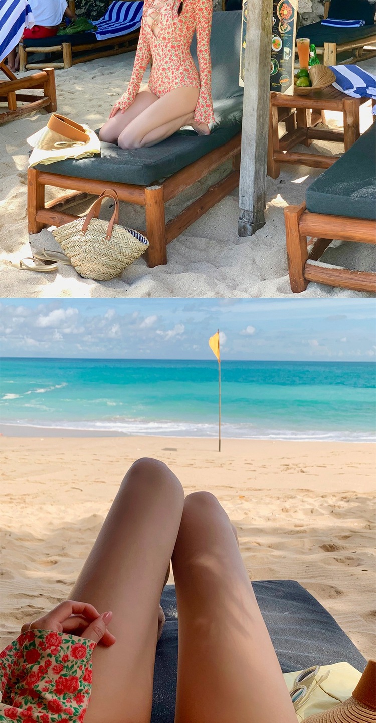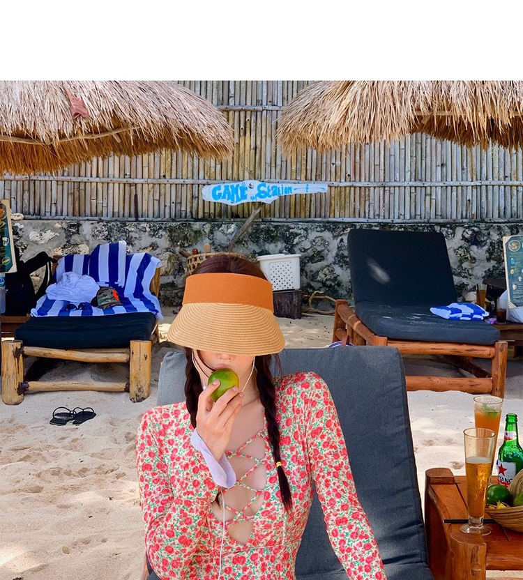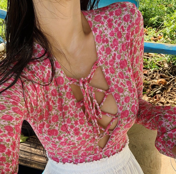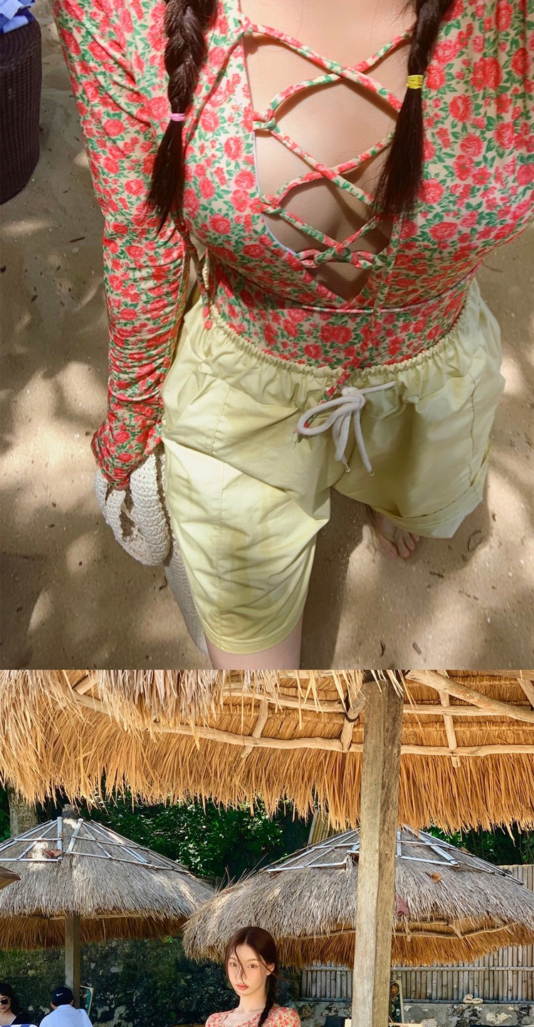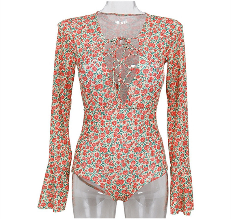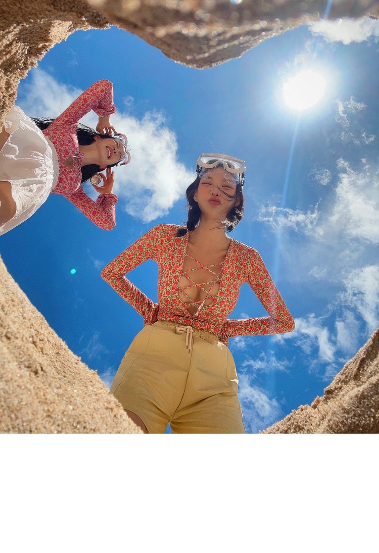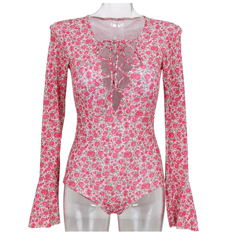 2024 한국식 동대문 딥 V 스트랩 플로럴 섹시 수영복 여성용 긴팔 슬림핏 작은 가슴 온천 수영복스토어 가기