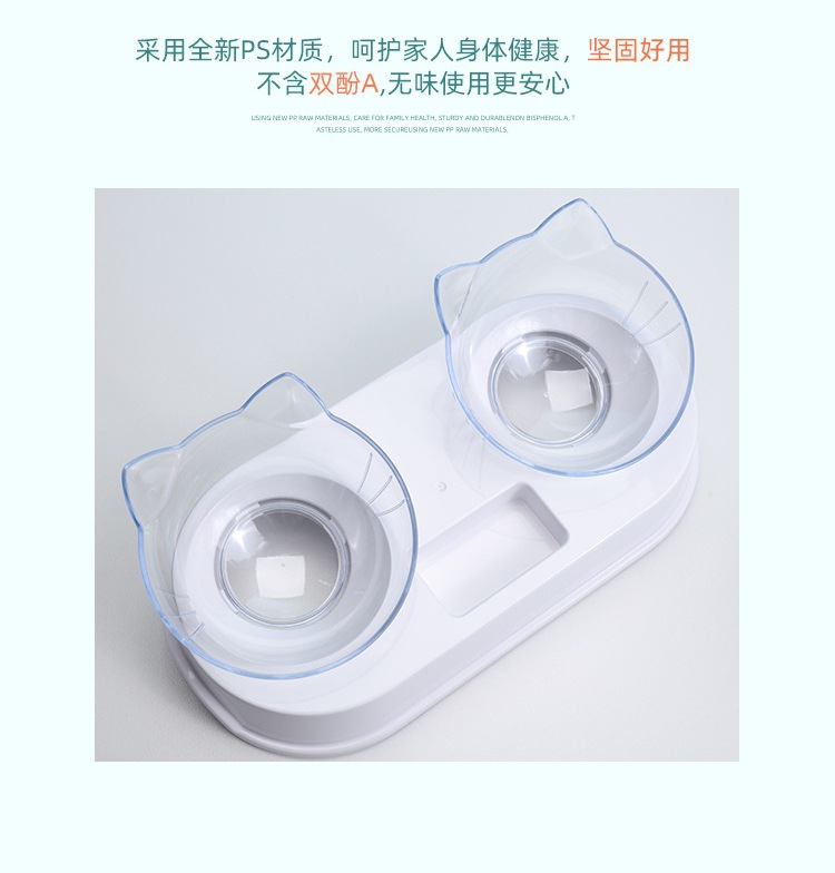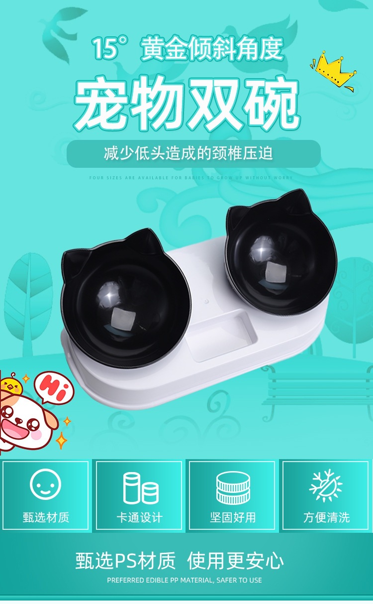 만화 고양이 머리 애완 동물 더블 그릇 고양이 그릇 목 보호 마시는 개 그릇 애완 동물 먹는 식기 고양이 먹이 분지 애완 동물 용품