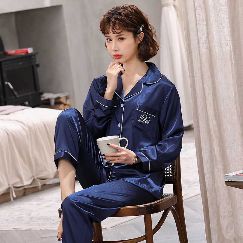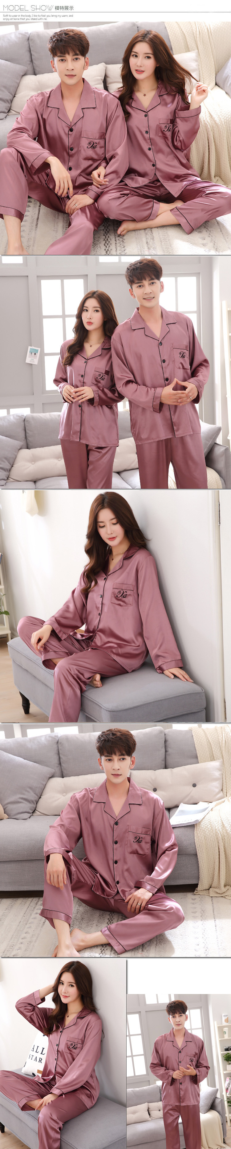 커플 잠옷 여성 봄과 여름 아이스 실크 긴팔 잠옷 남성 세트 한국식 플러스 사이즈 얇은 인조 실크 홈웨어