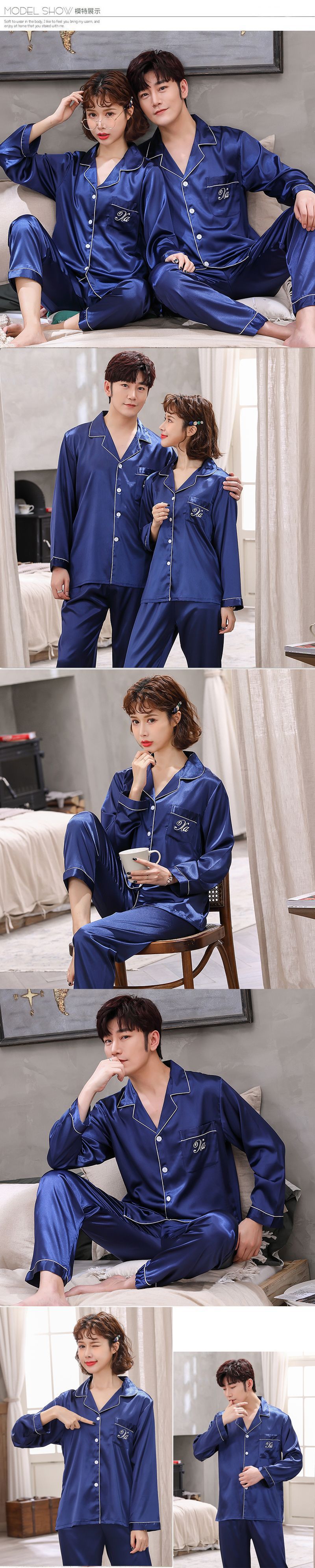 커플 잠옷 여성 봄과 여름 아이스 실크 긴팔 잠옷 남성 세트 한국식 플러스 사이즈 얇은 인조 실크 홈웨어스토어 가기