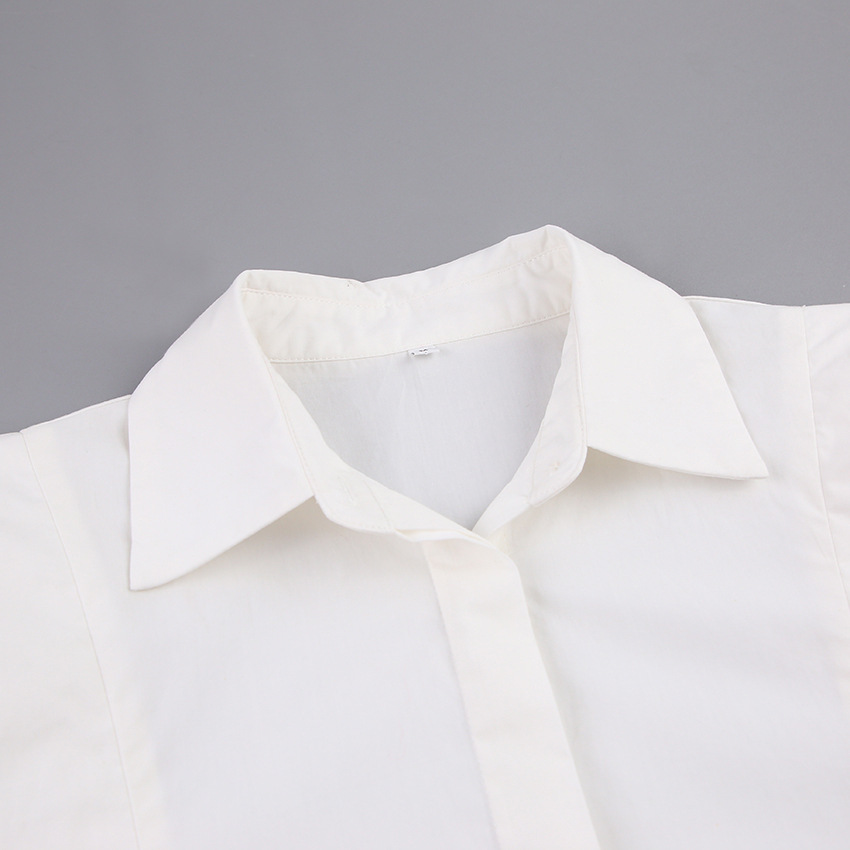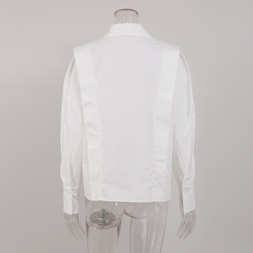 화이트 코튼 틈새 디자인 우아한 프랑스 셔츠 2024 유럽과 미국의 새로운 봄 패션 대외 무역 통근 여성