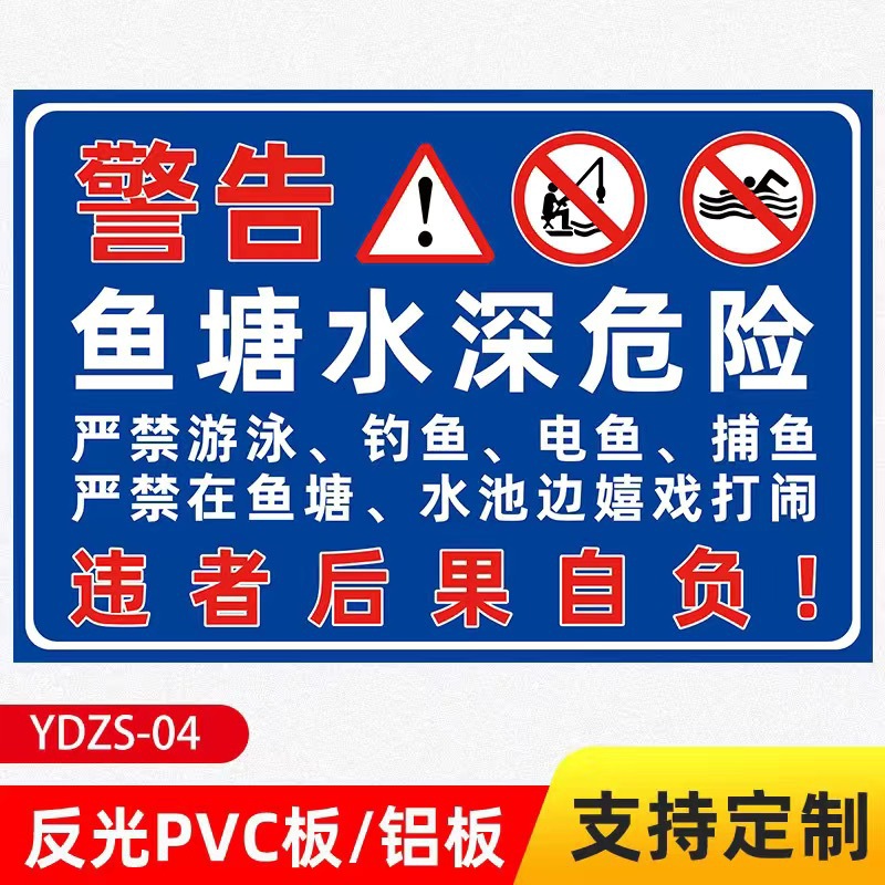 • (경고) 물고기 연못 수심 위험 50*40CM 반사 PVC 플라스틱 보드
