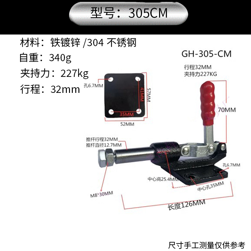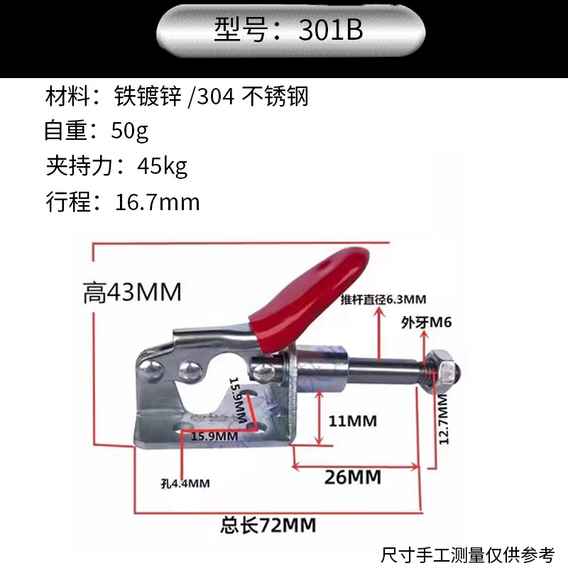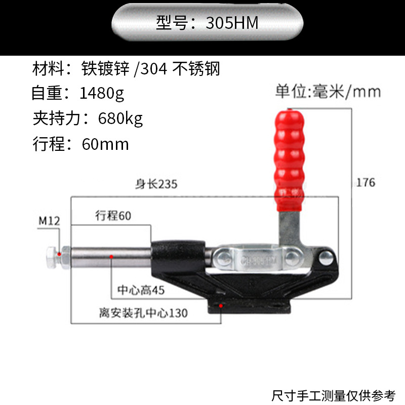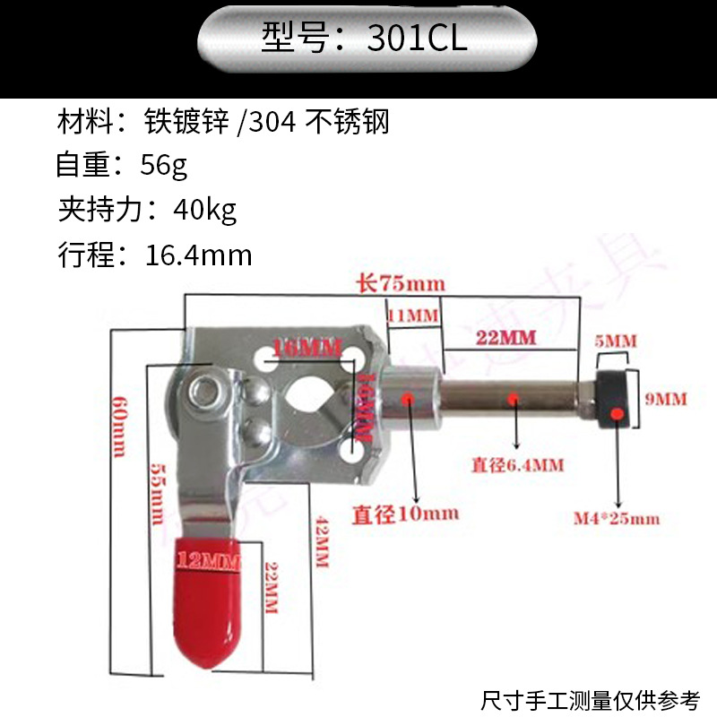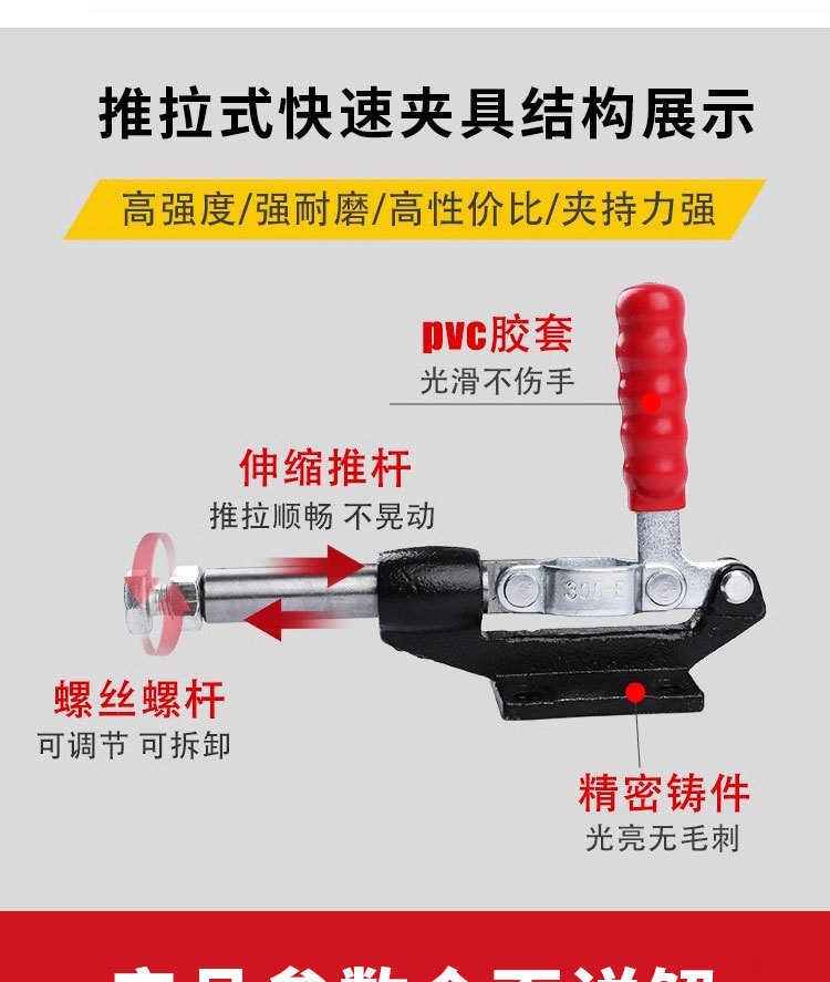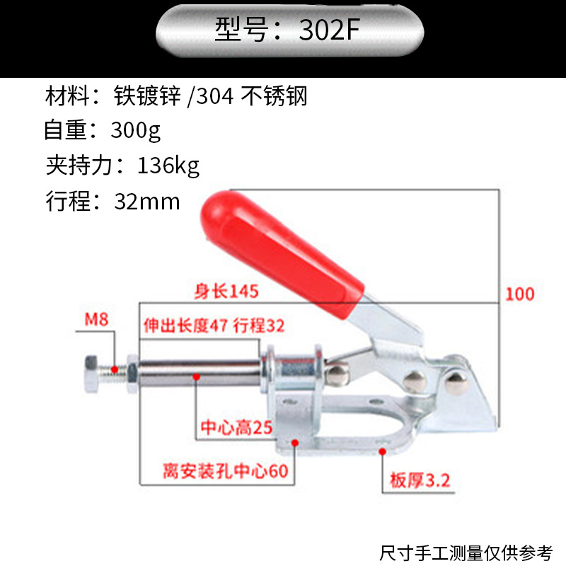 304 스테인레스 스틸 퀵 클램프 푸시 풀 수평 클램프 수동 평면 압력 퀵 클램프 수직 퀵 클램프