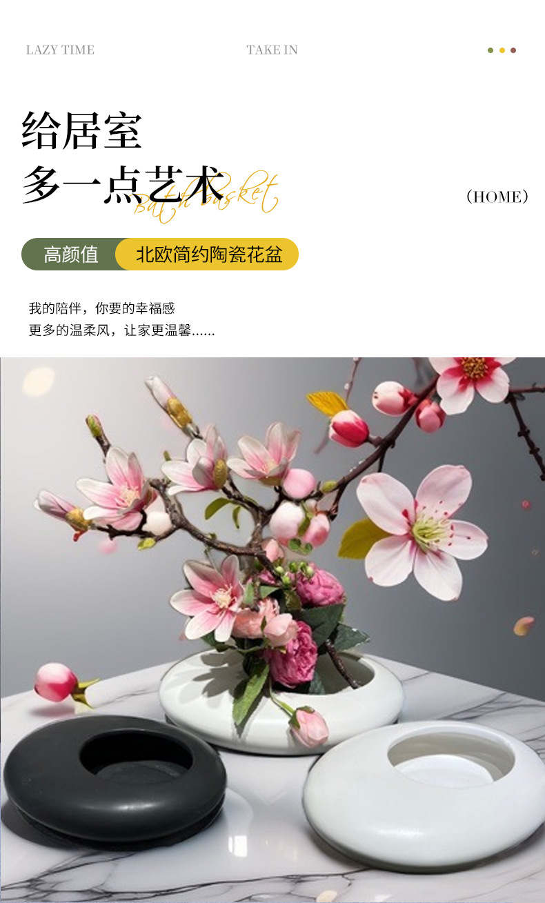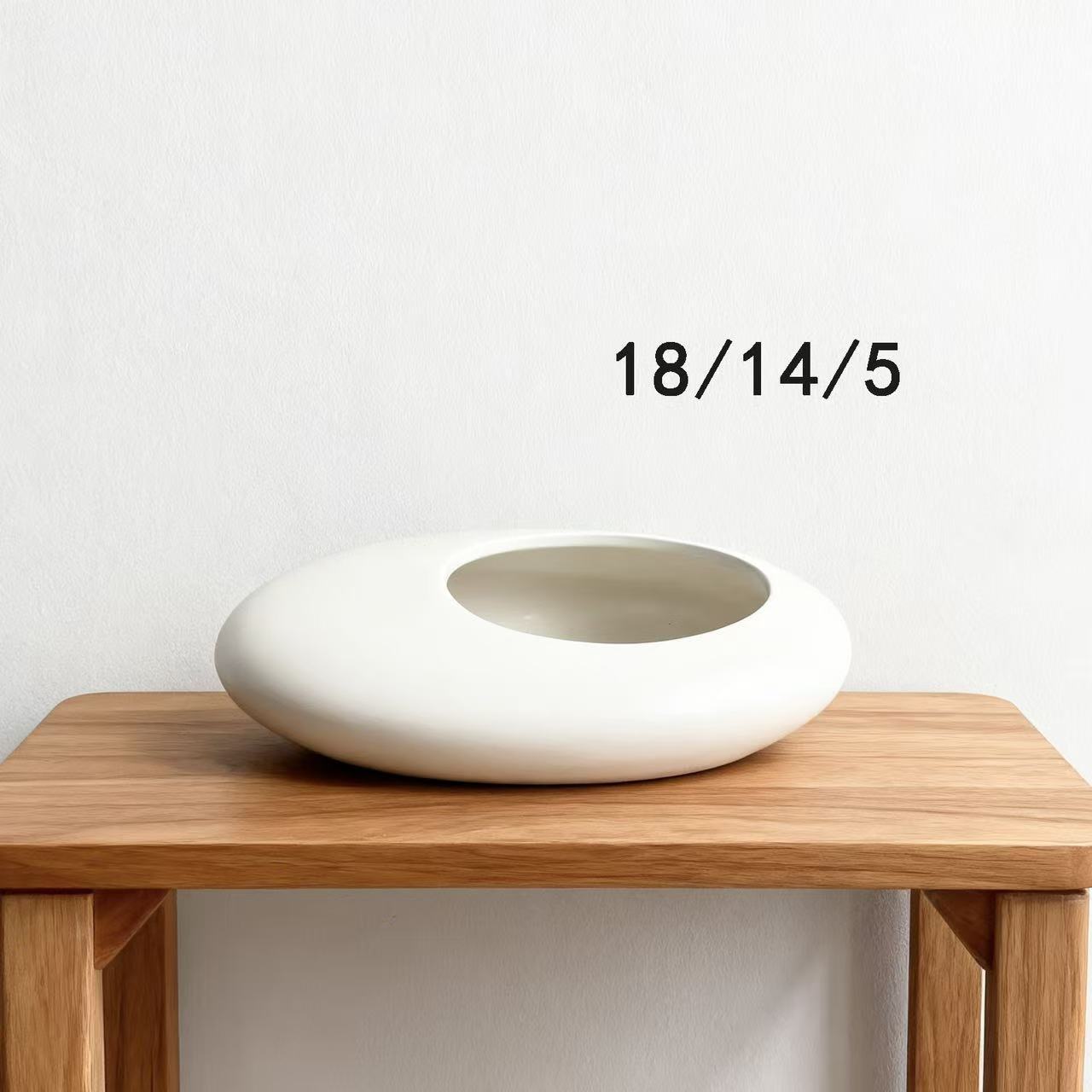 북유럽 스타일 심플 세라믹 화분 대형 창의적 장식품 거실 가정 장식 흰색 원형 화분 용기 꽃병