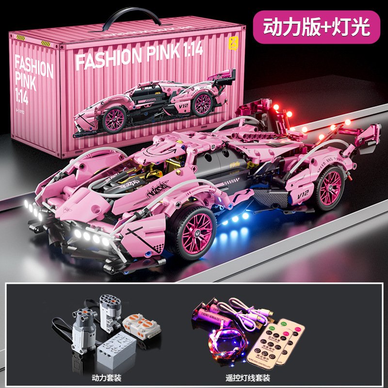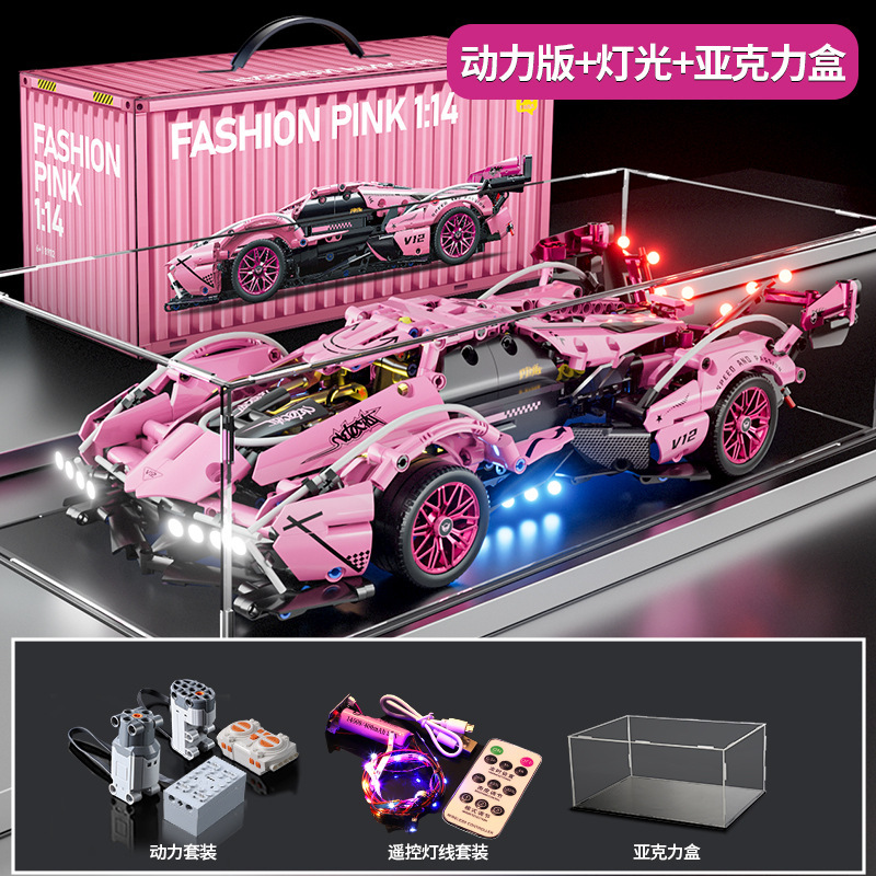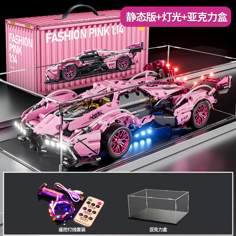 • 핑크 V12 럭셔리카 로고 [원격 제어 + 조명 + 디스플레이 박스]]