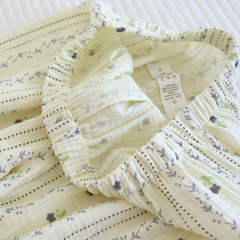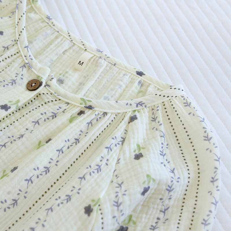 목가적 인 인쇄 된 신선한 잠옷 여성 2 종 봄과 가을면 얇은 느슨한 긴 소매 가정복 세트