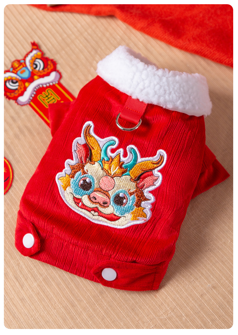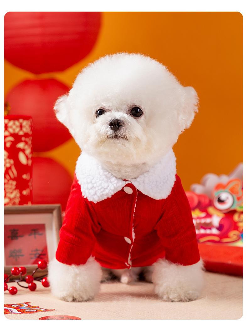 새해 토템 축제 개 옷 겨울 기모 코듀로이 트랙션 면화 패딩 옷 강아지 새끼 고양이 애완 동물 의류스토어 가기