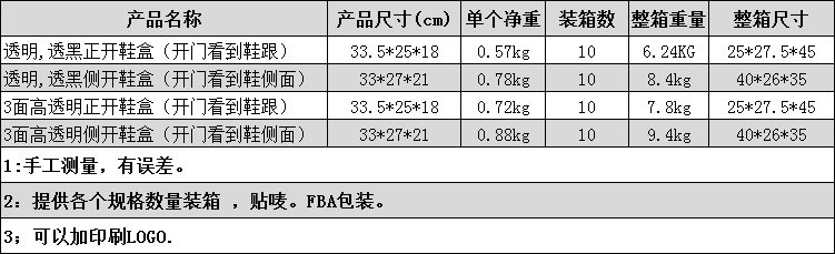 • 3 면 높은 투명 블랙 사이드 오픈 (약 46 야드 높이 운동화)