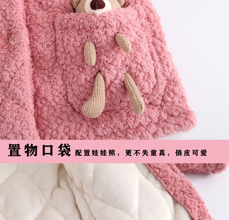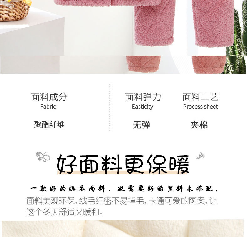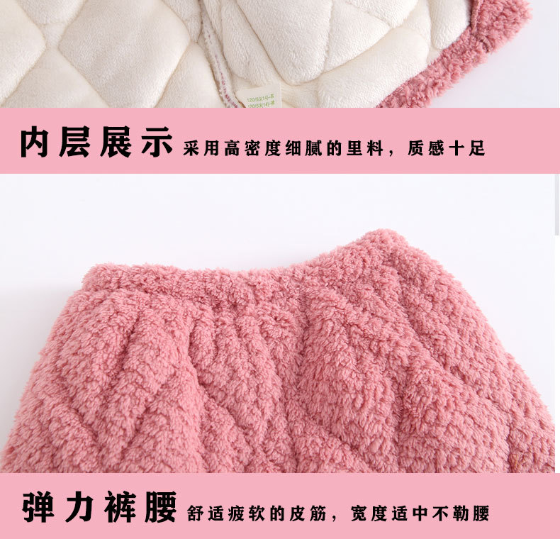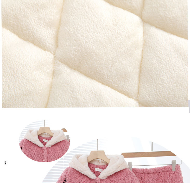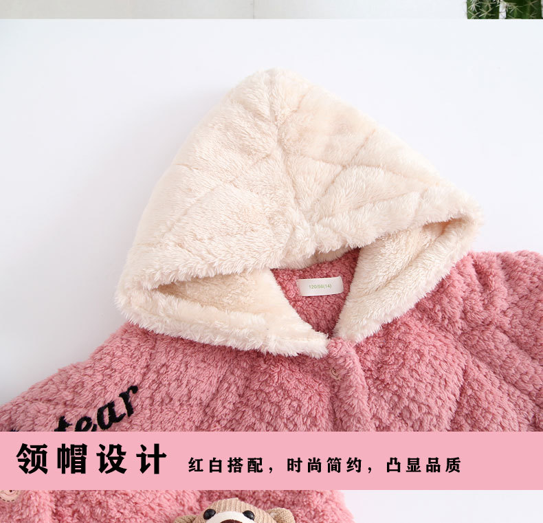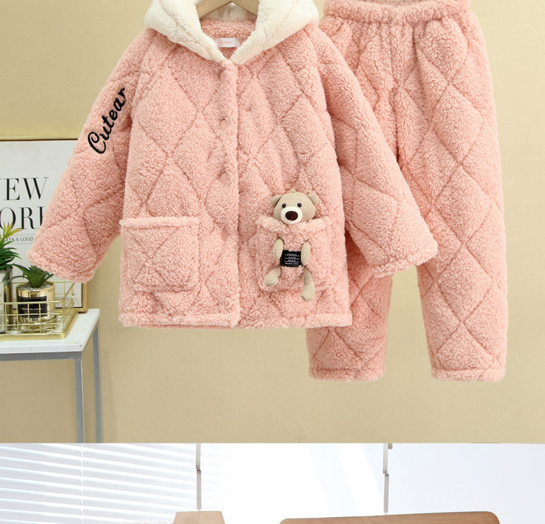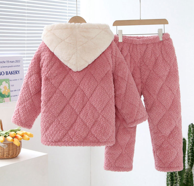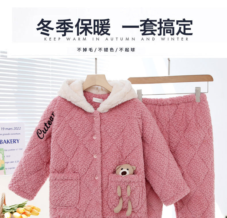 3 층 퀼트 산호 양털 어린이 모자 잠옷 여성의 겨울 긴 소매 두껍게 따뜻한 겉옷 홈웨어 세트스토어 가기