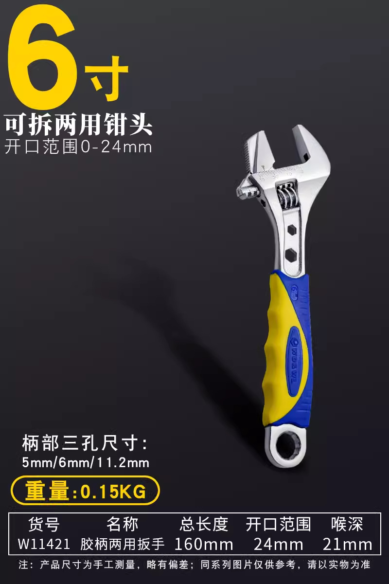 Weida 파이프 및 유연한 이중 목적 조정 가능한 렌치 대형 개방 다기능 이동식 포트 보드 욕실 수도관 펜치 하드웨어 도구스토어 가기