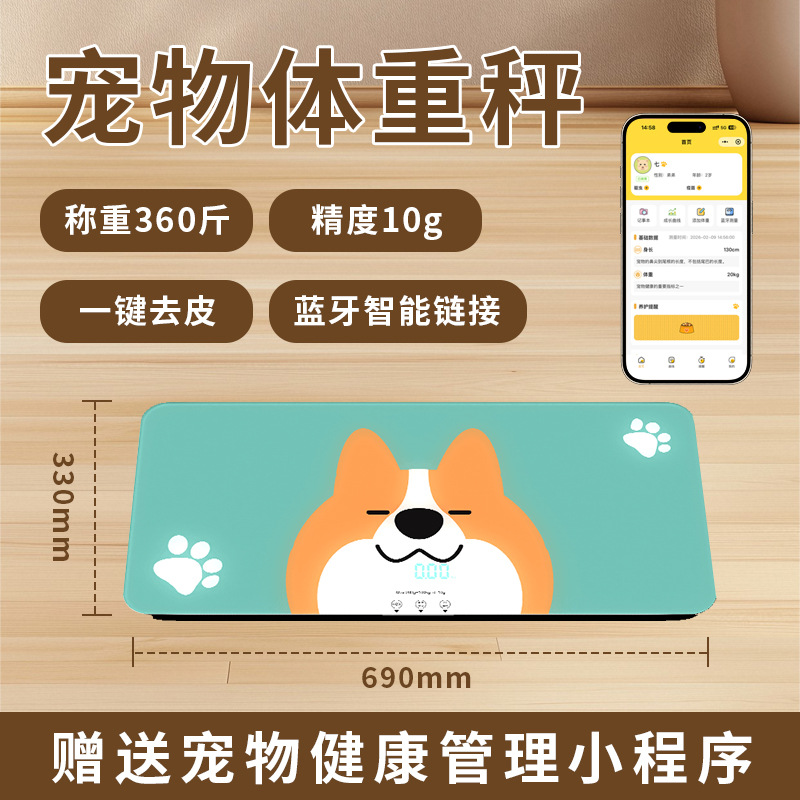 • 【충전식 블루투스 69*33cm】 강아지 캐릭터 스마트 중대형 반려동물 체중계