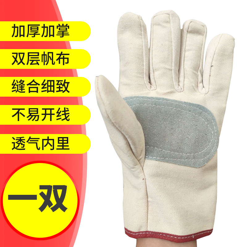布料:外面加厚黄斜纹帆布  掌心加皮  加厚内里