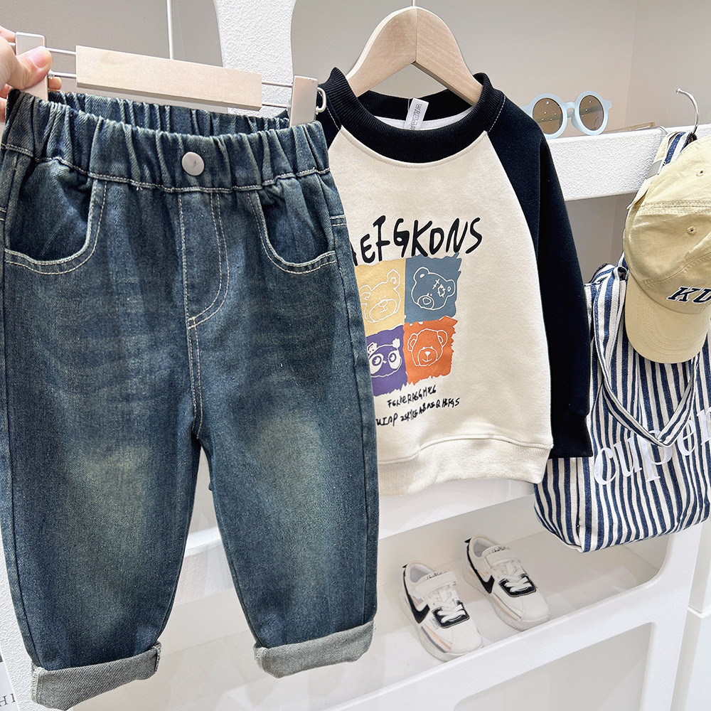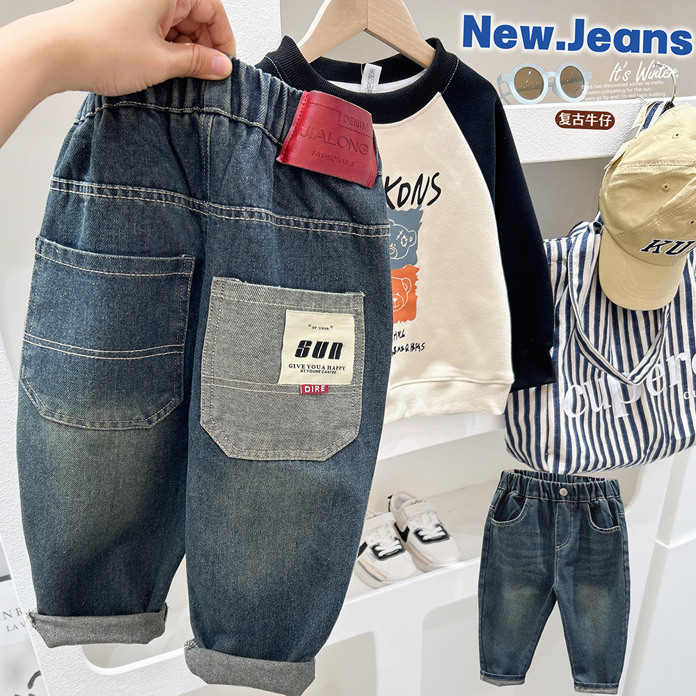소년 봄 청바지 2025 새로운 캐주얼 루즈 바지 중대형 어린이 봄 복고풍 데님 바지 유행스토어 가기