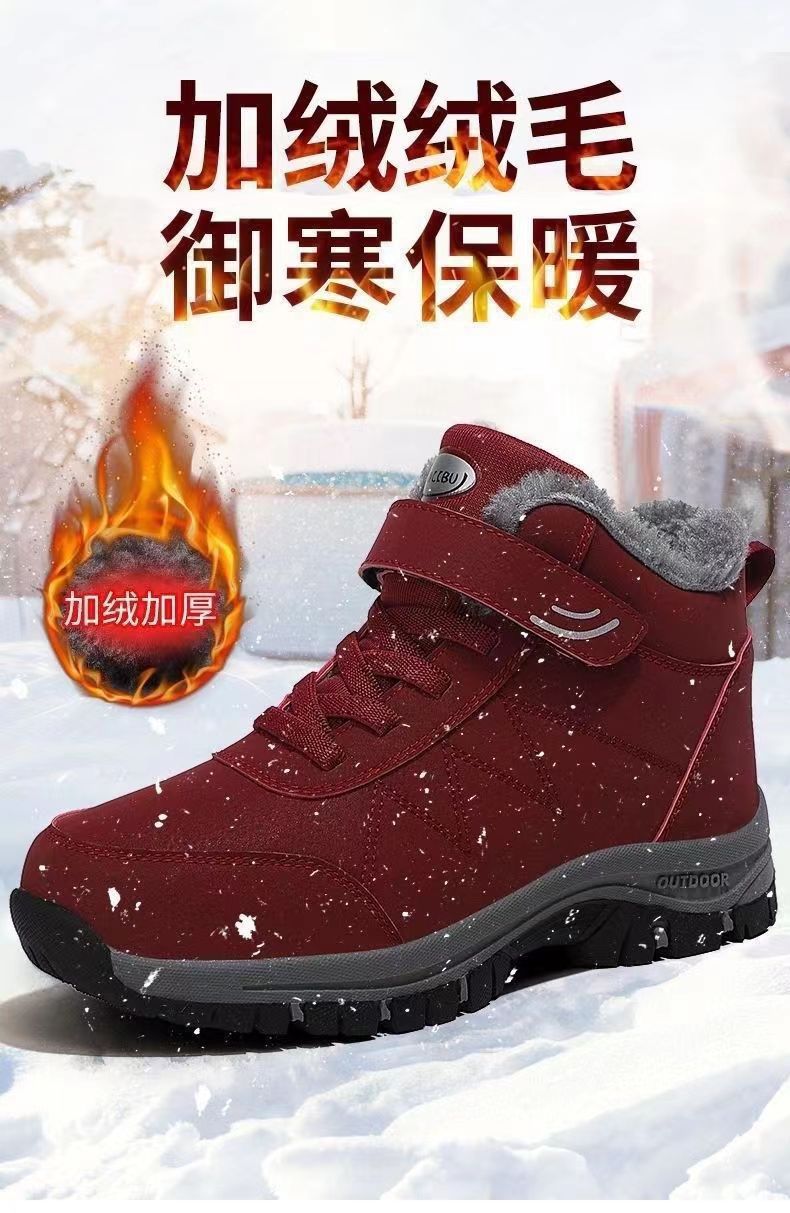 2024 겨울 새로운 캐주얼 남성 신발 기모 두꺼운 따뜻한면 신발 미끄럼 방지 스노우 부츠 중년 워킹화 재고스토어 가기