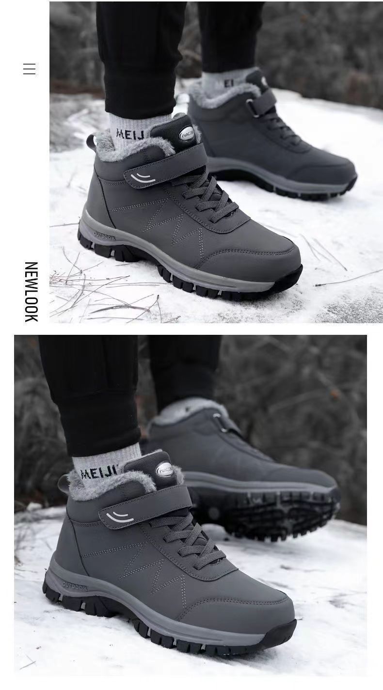 2024 겨울 새로운 캐주얼 남성 신발 기모 두꺼운 따뜻한면 신발 미끄럼 방지 스노우 부츠 중년 워킹화 재고