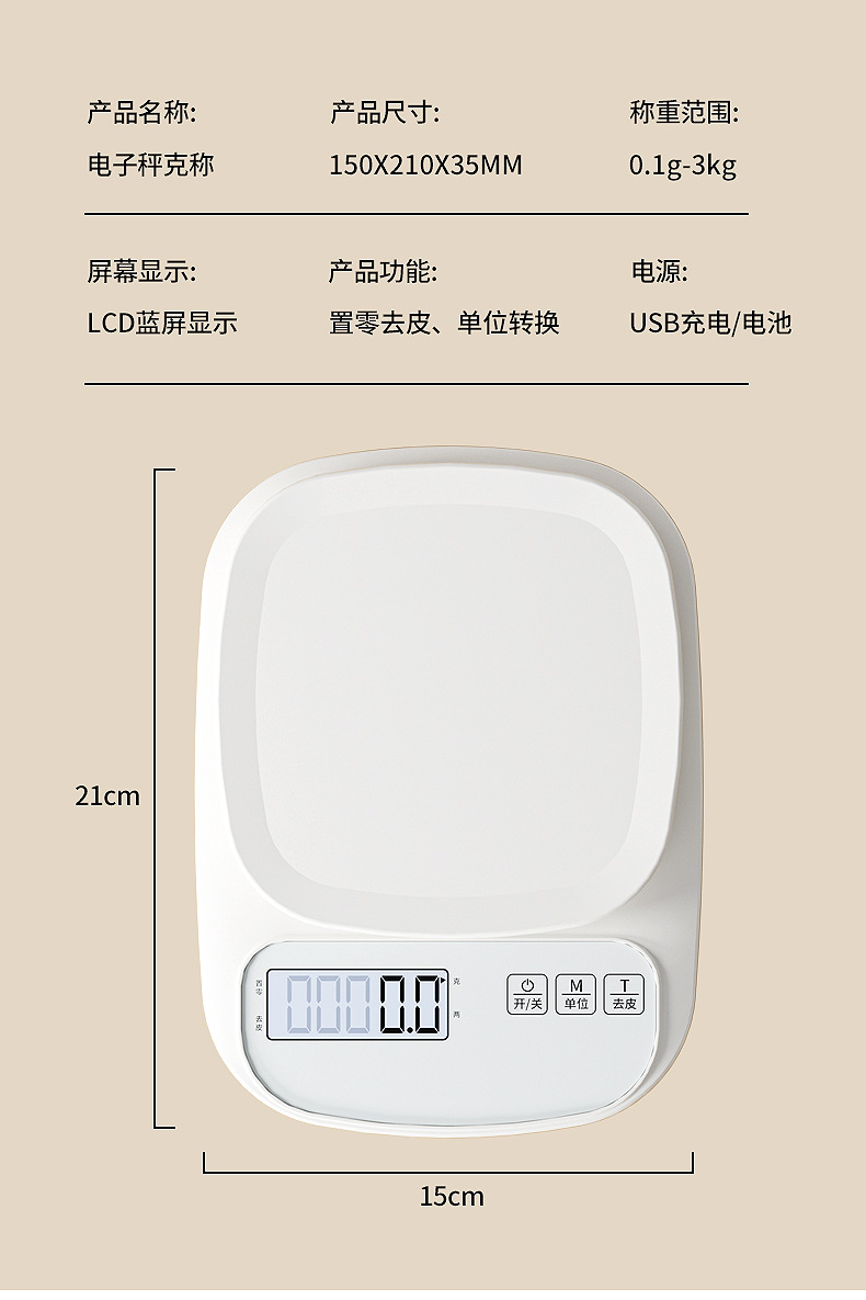 • 표준 7KG/1g [충전] USB 충전 라인 측정 컵 계란 흰색 분리기