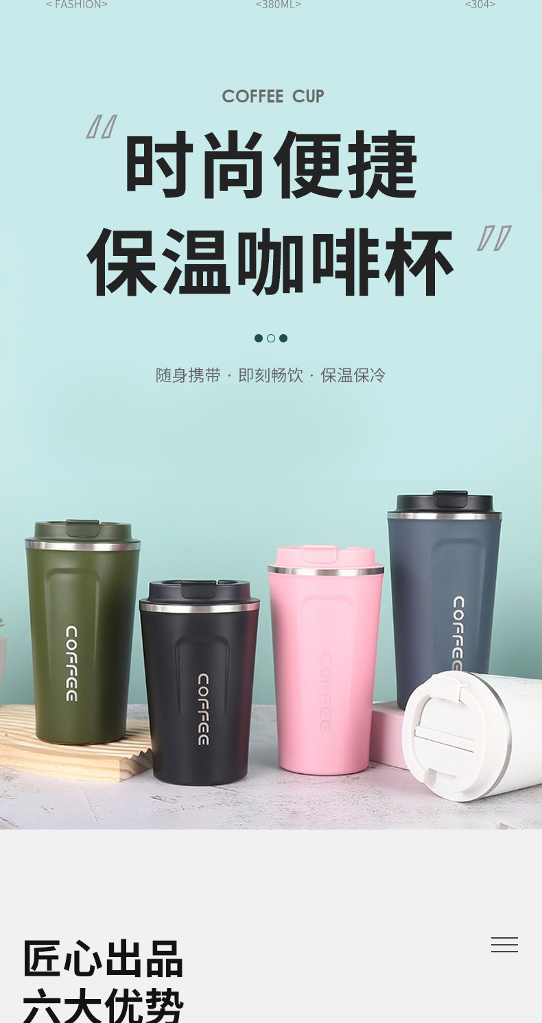 국경 간 304 스테인레스 스틸 커피 컵 휴대용 콜드 컵 진공 절연 컵 크리 에이 티브 동반 워터 컵 사용자 정의 로고