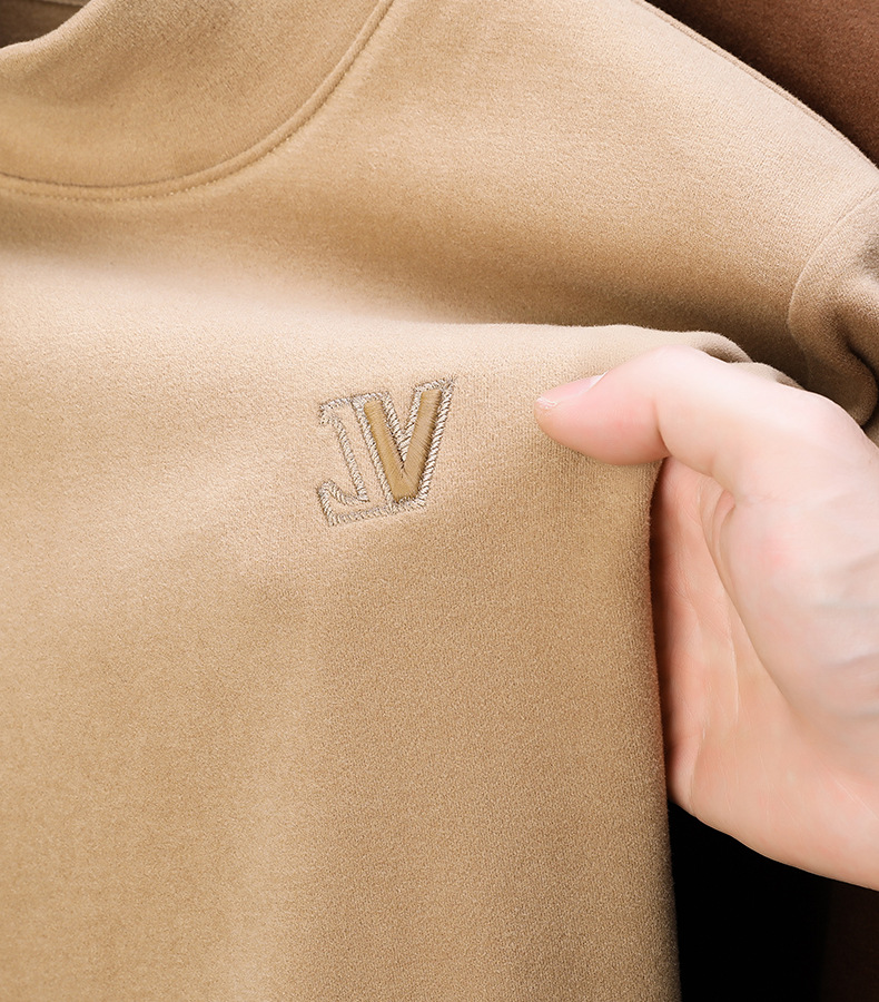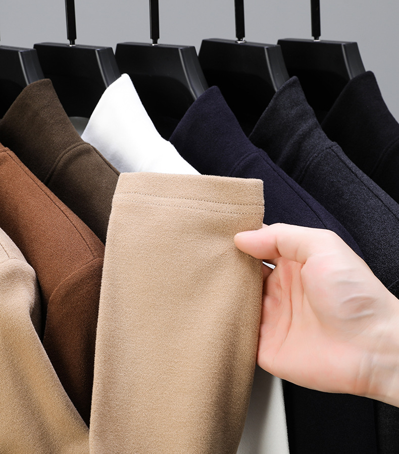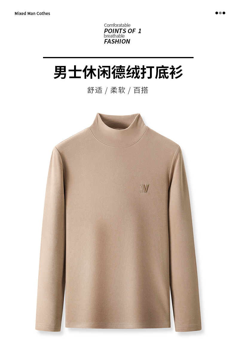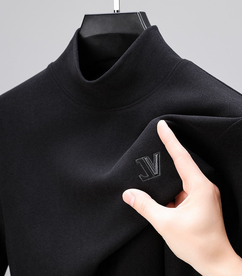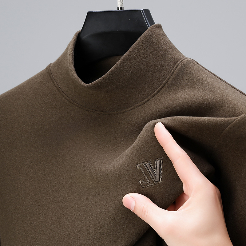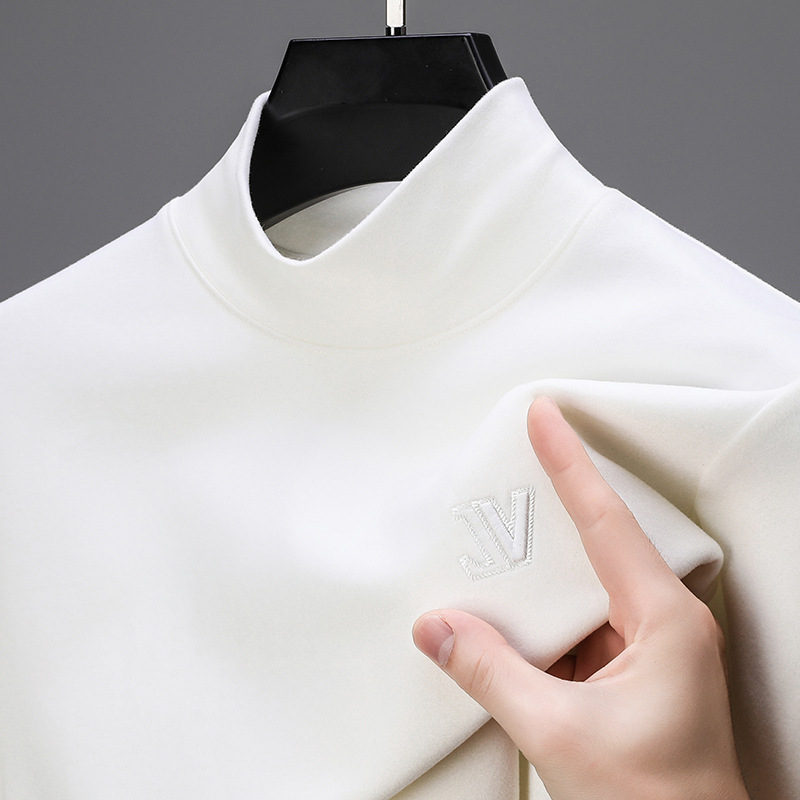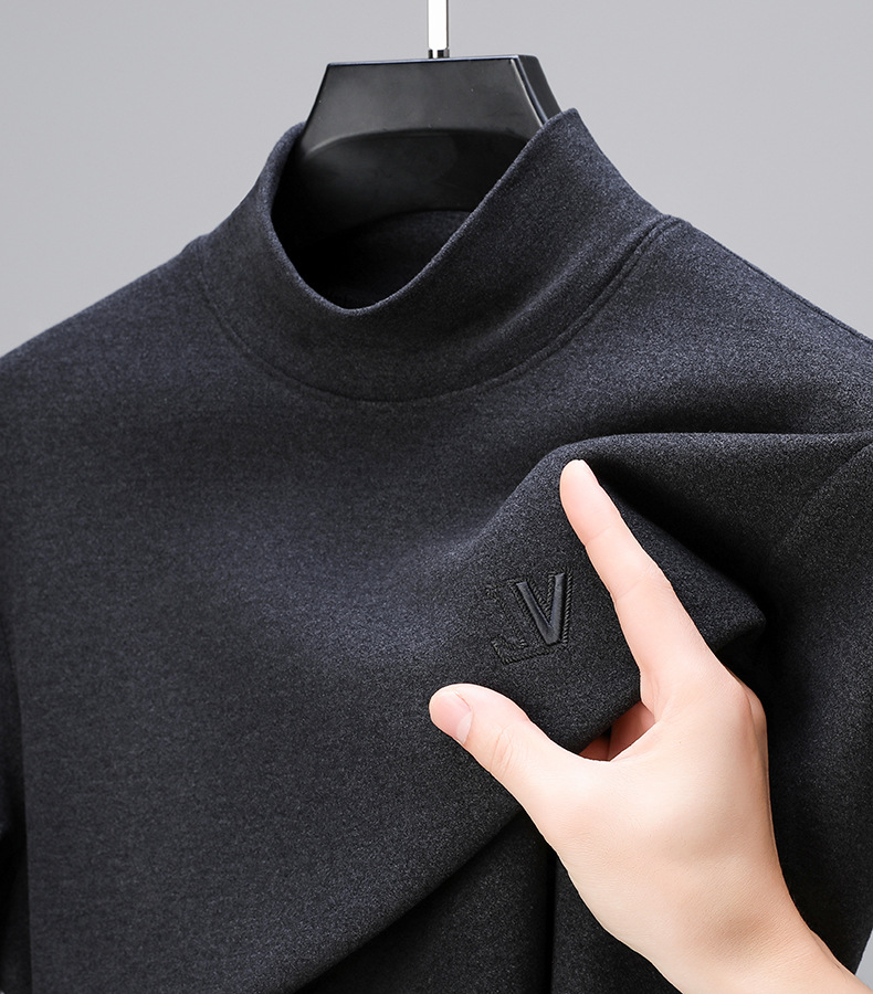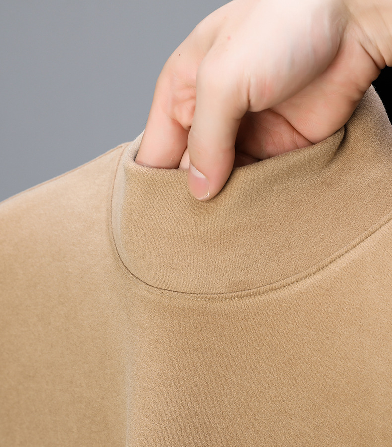 하프 터틀넥 스웨터 남성용 드 벨벳 바닥 셔츠 양면 벨벳 남성 미드 칼라 긴팔 티셔츠 가을과 겨울 두꺼운 따뜻한 탑스토어 가기