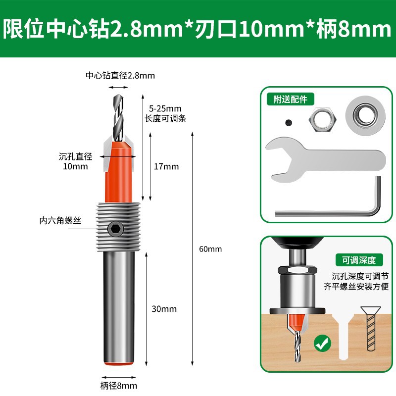 카운터 싱크 홀 드릴 스토퍼 목공 구멍 오프너 나사 카운터 싱크 헤드 핸드 드릴 리밍 콘 구멍 깊은 구멍 리드 홀 핸드 건 드릴스토어 가기